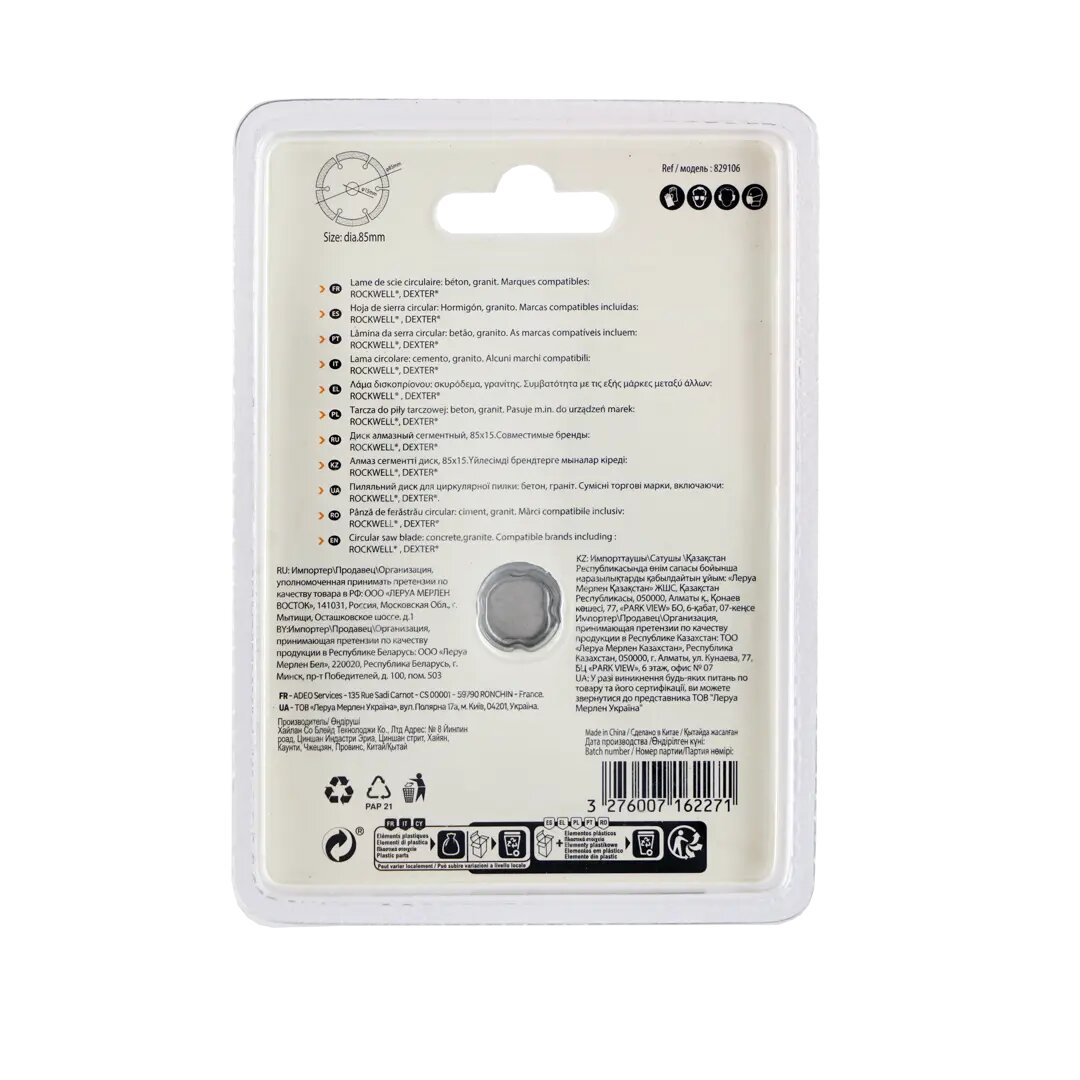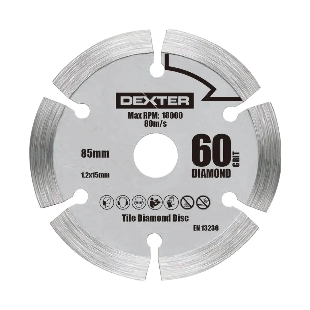 **Диск алмазный по камню сегментированный Dexter, 85x15 мм** для циркулярной пилы идеально подходит для резки бетона и гранита. Максимальная скорость вращения 7000 об/мин.