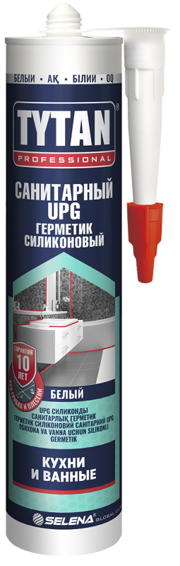 **Герметик санитарный Tytan UPG Turbo** изготовлен на основе силикона. Предназначен для внутренних и наружных работ. Отличается высокой скоростью отверждения, не растрескивается и не теряет качественных характеристик в процессе эксплуатации. Используется для герметизации стыков, швов, трещин в материалах и поверхностях в помещениях с высоким уровнем влажности. Содержит противогрибковые компоненты, обеспечивающие продолжительную защиту от образования грибка и плесени.