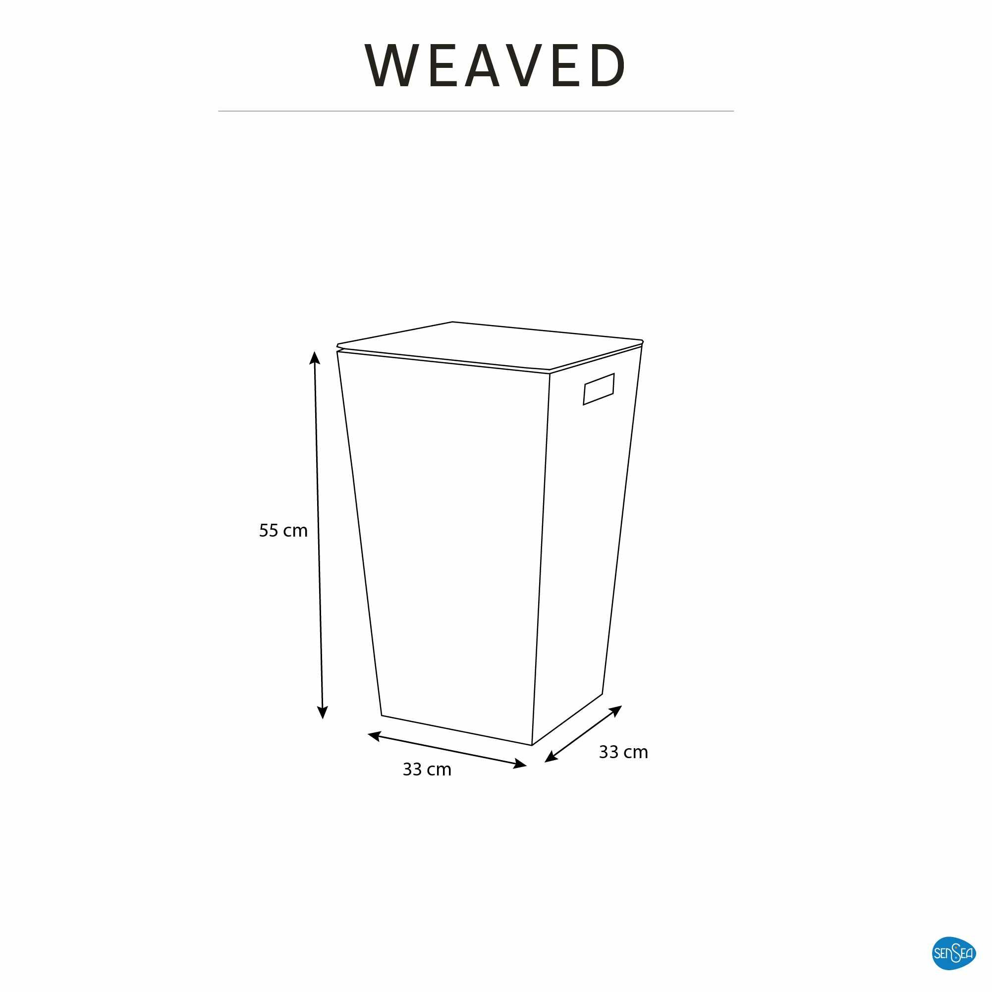 **Корзина для белья Sensea Weaved** предназначена для сбора белья перед стиркой. Компактная, выполненная в привлекательном дизайне, она не займет много места в помещении, а поддерживать порядок будет намного проще. Корпус выполнен из прочного полипропилена, устойчивого к деформации и коррозии. Поверхность легко моется при помощи обычных средств бытовой химии. Многочисленные отверстия в стенках обеспечивают проветривание.