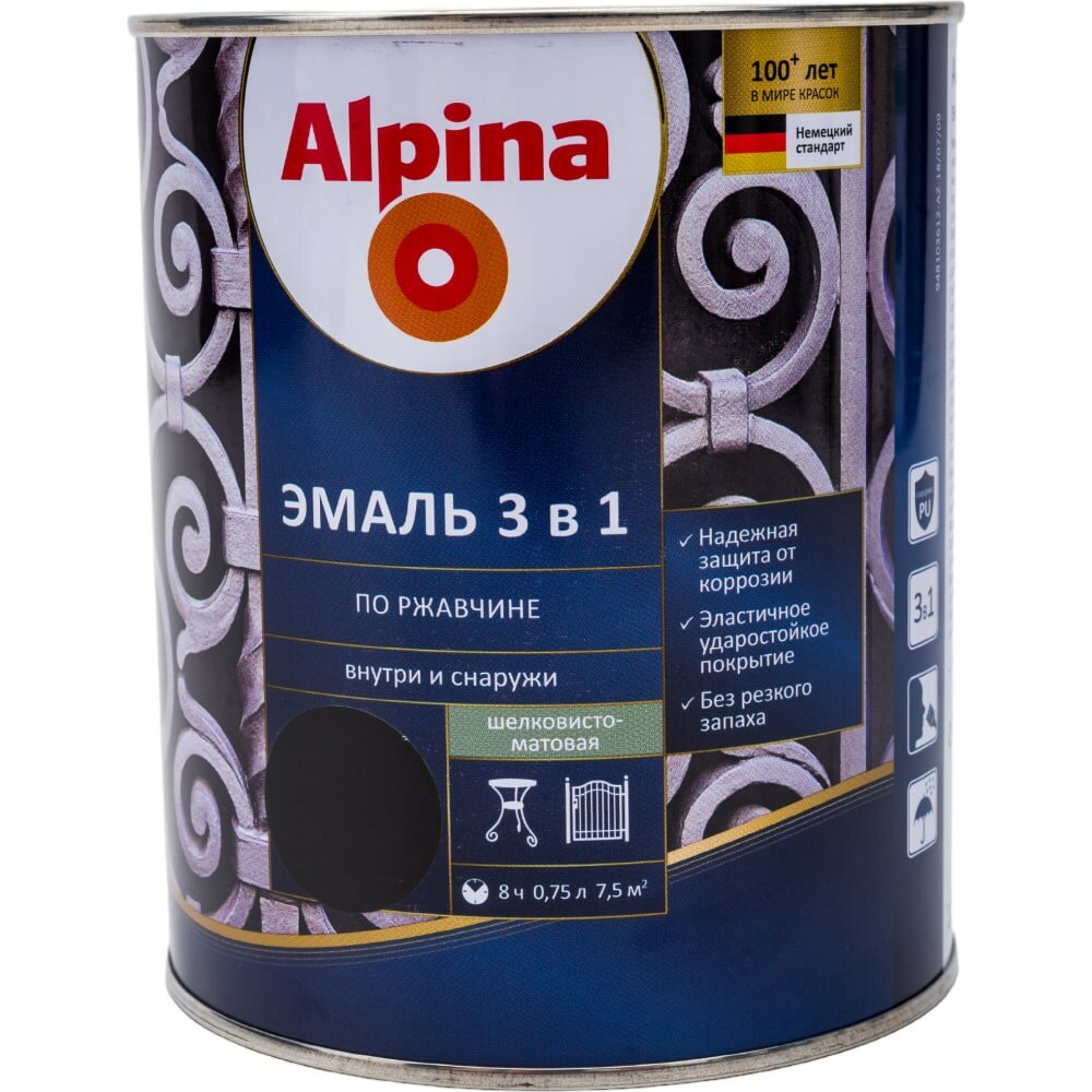 Сервис сравнения цен СкидкаГИД предлагает сравнить цены на товар «Эмаль по ржавчине 3 в 1 Alpina цвет шоколадный 0.75 л»