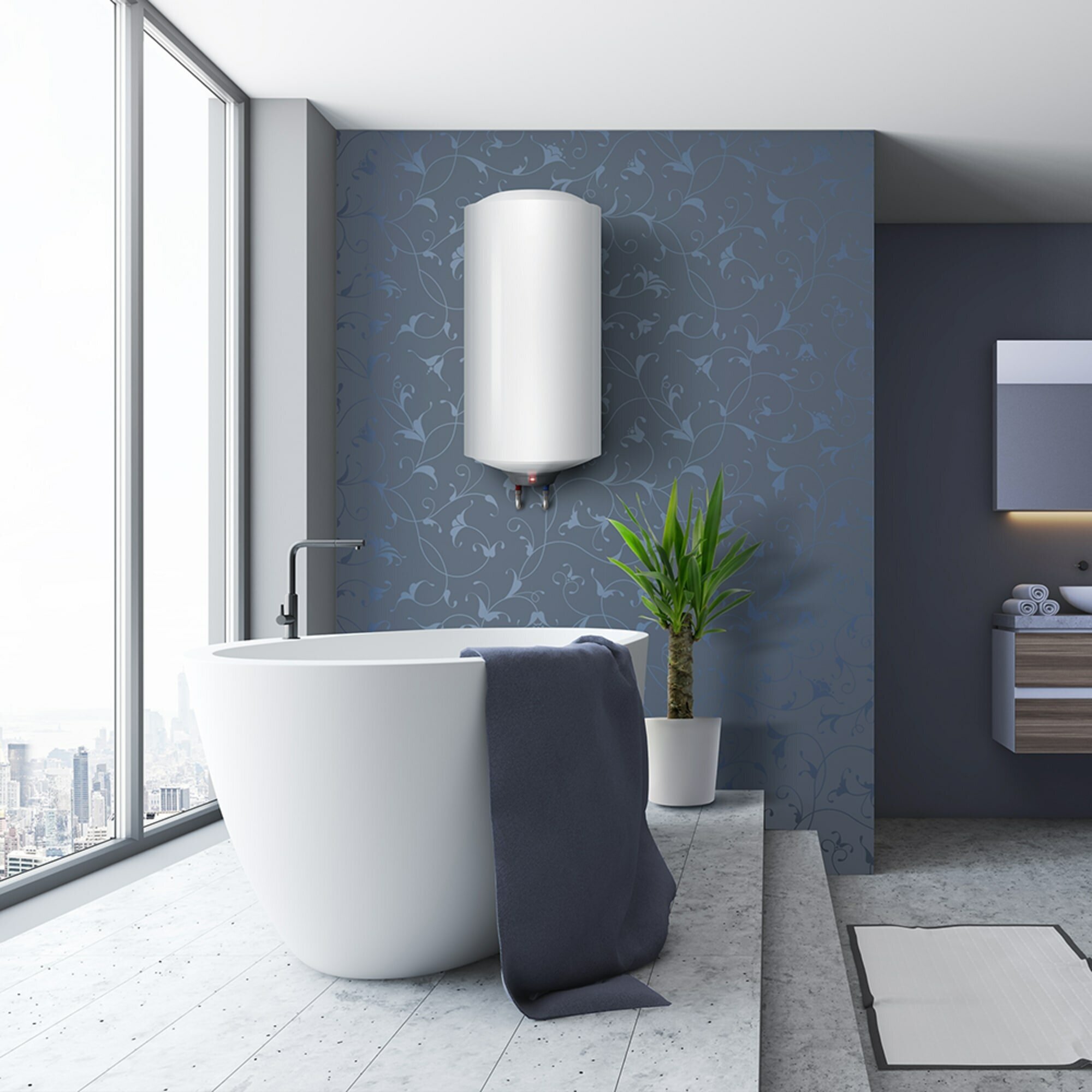 Электрический водонагреватель Aquaverso ER V емкостью 85 л рассчитан на 3 человека. Прибор обеспечивает бесперебойное снабжение горячей водой и сохранение заданной температуры. Устанавливается в вертикальном положении, форма корпуса круглая. Изготовлено в России. Гарантия на бак — 1 год. Для защиты от коррозии и накипи водонагреватель оснащен магниевым анодом.Водонагреватель оборудован одним нагревательным элементом. Мощность — 1500 Вт. Максимальная температура нагрева — 75°C. Термостат регулируется механически. Максимальное давление — 6 бар. Наружные размеры прибора: ширина — 44,5 см, высота — 79 см, глубина — 45,9 см. Диаметр подключения 1/2 дюйма.Внутренний бак изготовлен из эмалированной стали. Слой эмали продлевает срок эксплуатации и обеспечивает гигиеничность.круглая форма бакаМожно устанавливать в ванной комнате и на кухне.