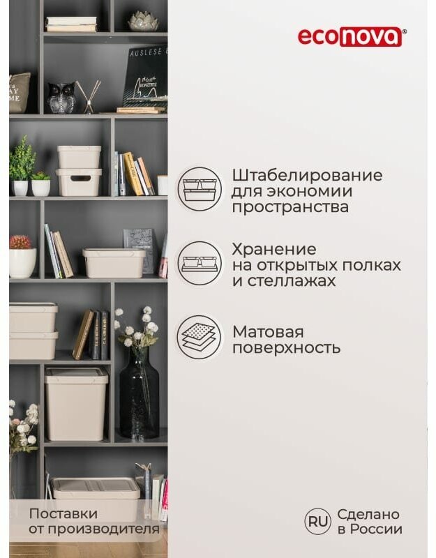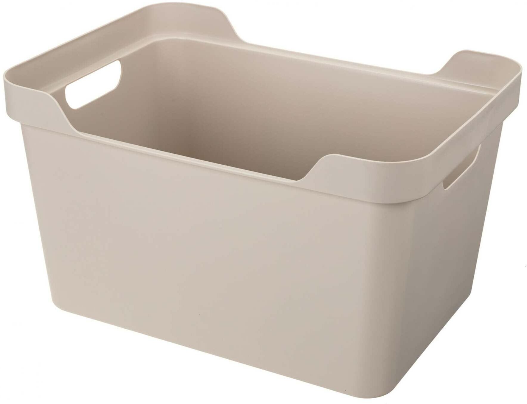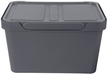 **Ящик Deluxe** изготовлен из полипропилена — прочного и легкого пластика, и предназначен для хранения различных хозяйственно-бытовых мелочей. Изделие можно мыть теплой водой с моющим средством. Ящик нейтрального серого цвета имеет размеры 380 × 276 × 220 мм и объем 18 л.