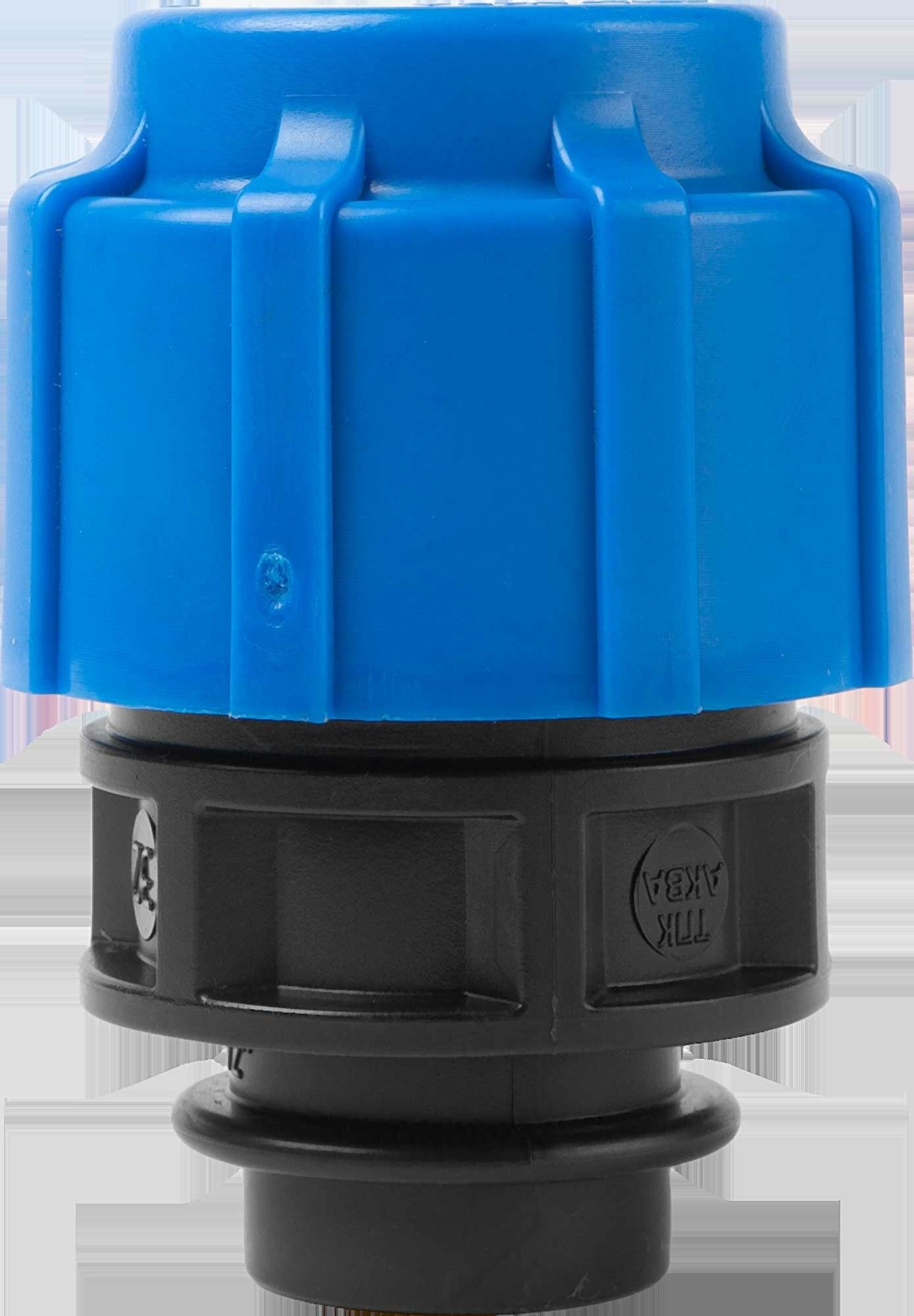 **Муфта Политэк** используется в качестве соединительного элемента двух отрезков стального трубопровода и ПНД. Имеет резьбу, соответствующую размерам и стандартам резьбы стальных труб. Применяется для создания различных комбинаций отводов, разветвлений систем с использованием других компрессионных фитингов.