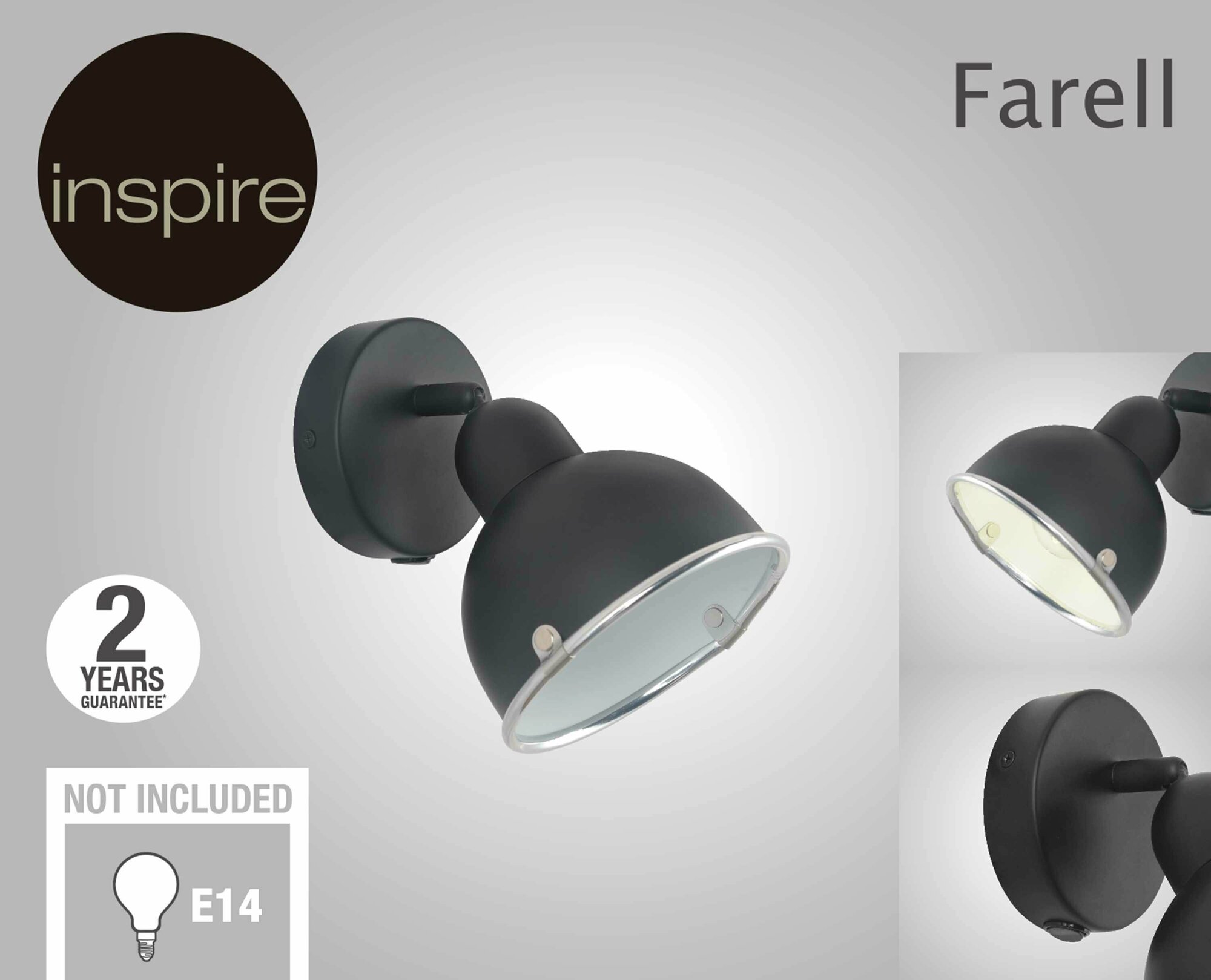**Спот поворотный Inspire Farell 1 лампа** идеально подходит для освещения прихожей или для размещения на стене гостиной. Благодаря своему дизайну этот светильник отлично впишется в современный интерьер в индустриальном стиле. Поворотная голова Farell освещает именно то место, которое вам нужно. Используйте этот товар с другими продуктами той же серии. Цвет светильника - черный. Не забудьте приобрести лампочку с цоколем E14.