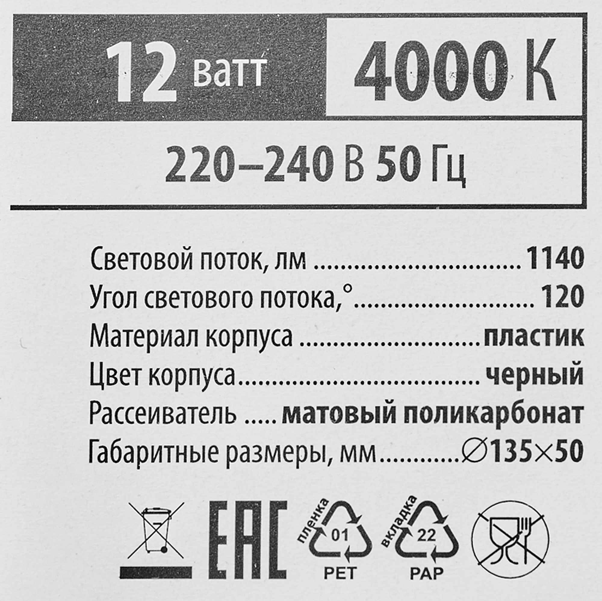Светильник ЖКХ светодиодный Volpe Q293 12 Вт IP65 накладной круг нейтральный белый свет цвет черный
