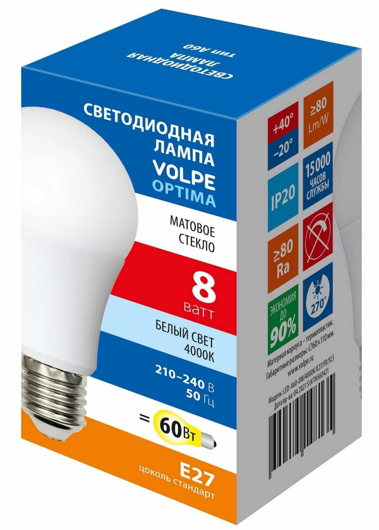 Лампа светодиодная Volpe E27 210-240 В 8 Вт груша матовая 640 лм нейтральный белый свет
