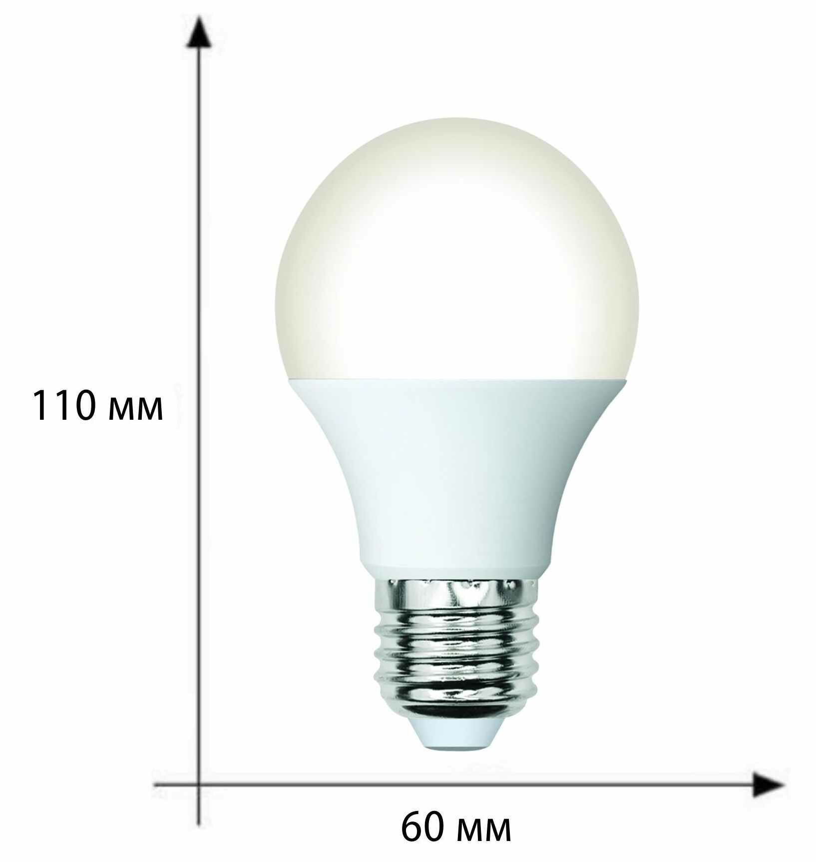 **Лампа светодиодная Volpe** — экономичная и практичная замена ламп накаливания, галогенных ламп, а также компактных энергосберегающих ламп, предназначенных для общего освещения помещений, акцентной и точечной подсветки, и использования в декоративных светильниках. Заменяет лампу накаливания 60 Вт. Световой поток – 640 Лм. Цвет освещения – холодный белый (4000К). Лампа выполнена в форме груши из матового стекла с цоколем Е27.