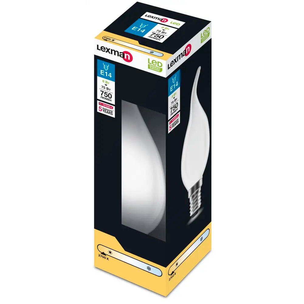Лампа светодиодная Lexman E14 220-240 В 6 Вт свеча на ветру матовая 750 лм теплый белый свет