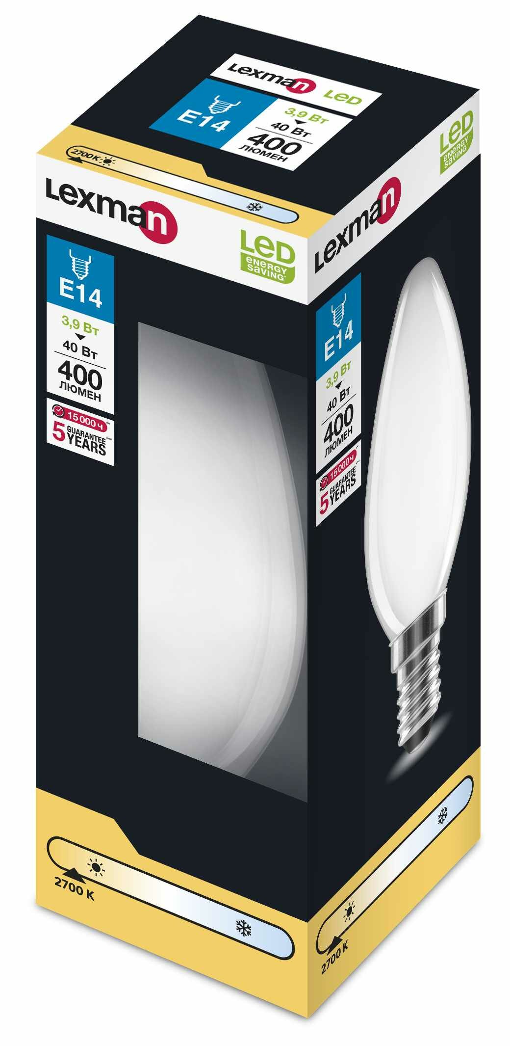 Лампа светодиодная Lexman E14 220-240 В 4 Вт свеча матовая 400 лм теплый белый свет
