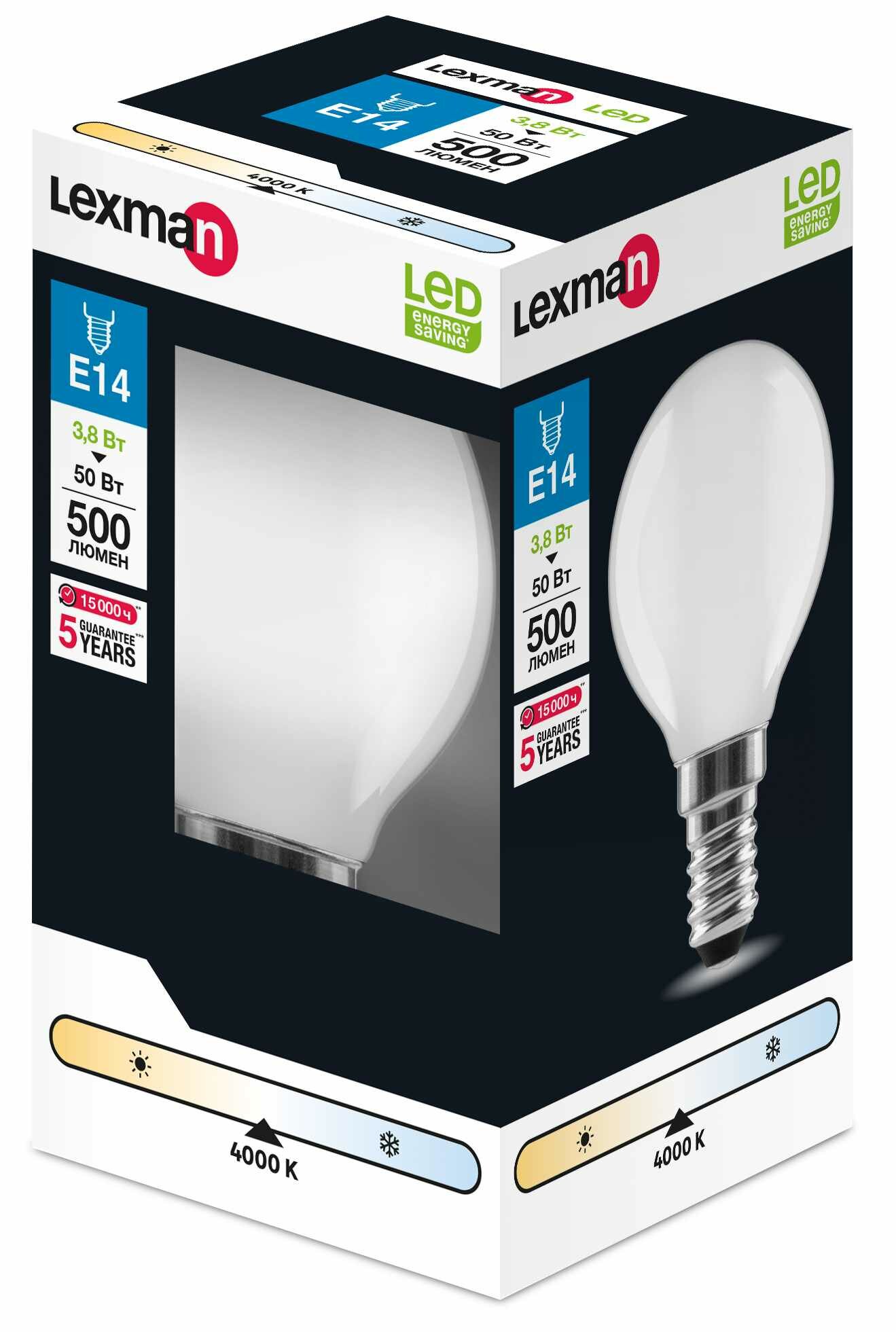 Лампа светодиодная Lexman E14 220-240 В 38 Вт шар матовая 500 лм нейтральный белый свет