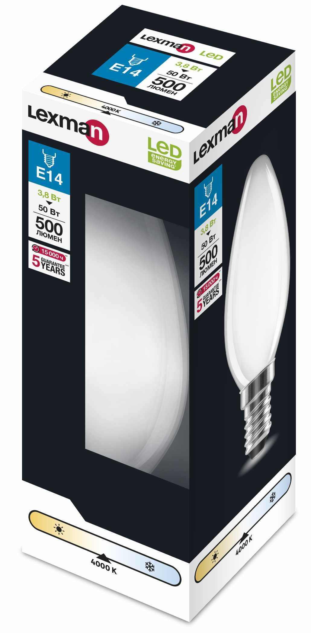 Лампа светодиодная Lexman E14 220-240 В 4 Вт свеча матовая 400 лм нейтральный белый свет