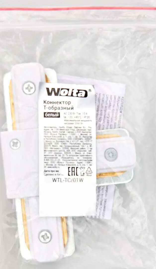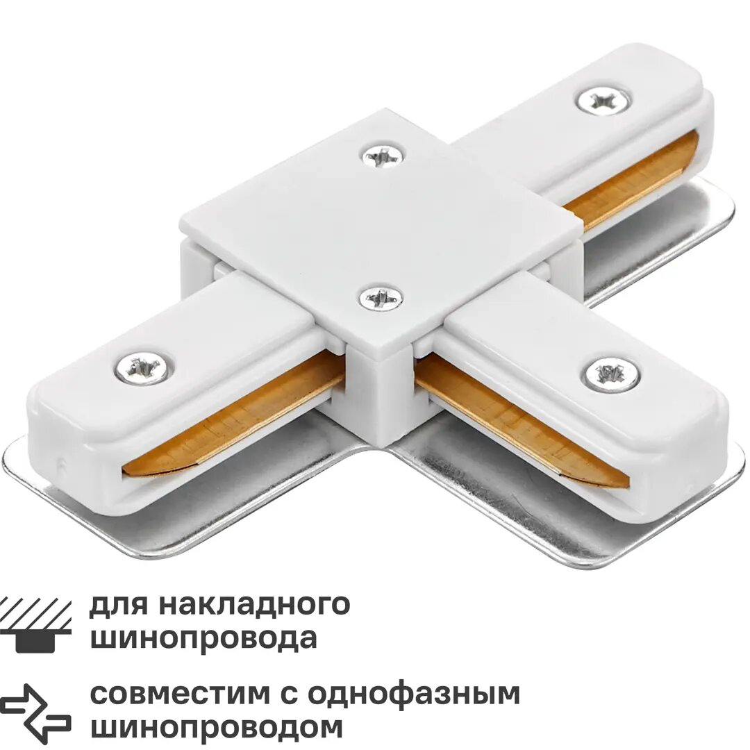 Коннектор для соединения трековых шинопроводов Т-образный Wolta WTL-TC/01W цвет белый