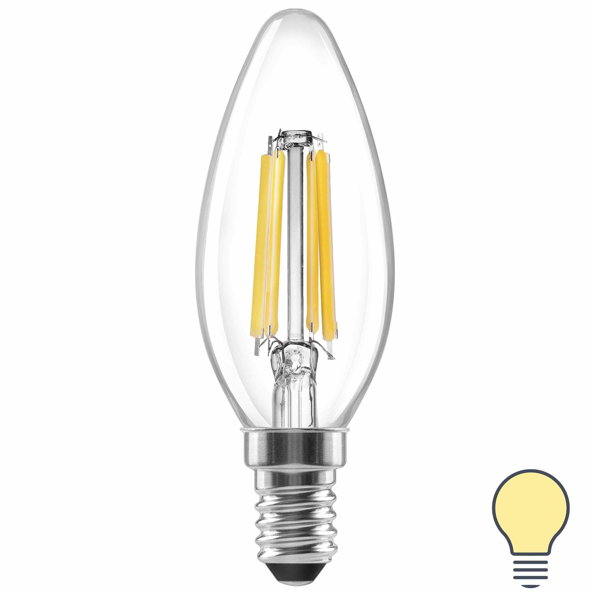 Лампа светодиодная Lexman E14 220-240 В 6 Вт свеча прозрачная 750 лм теплый белый свет