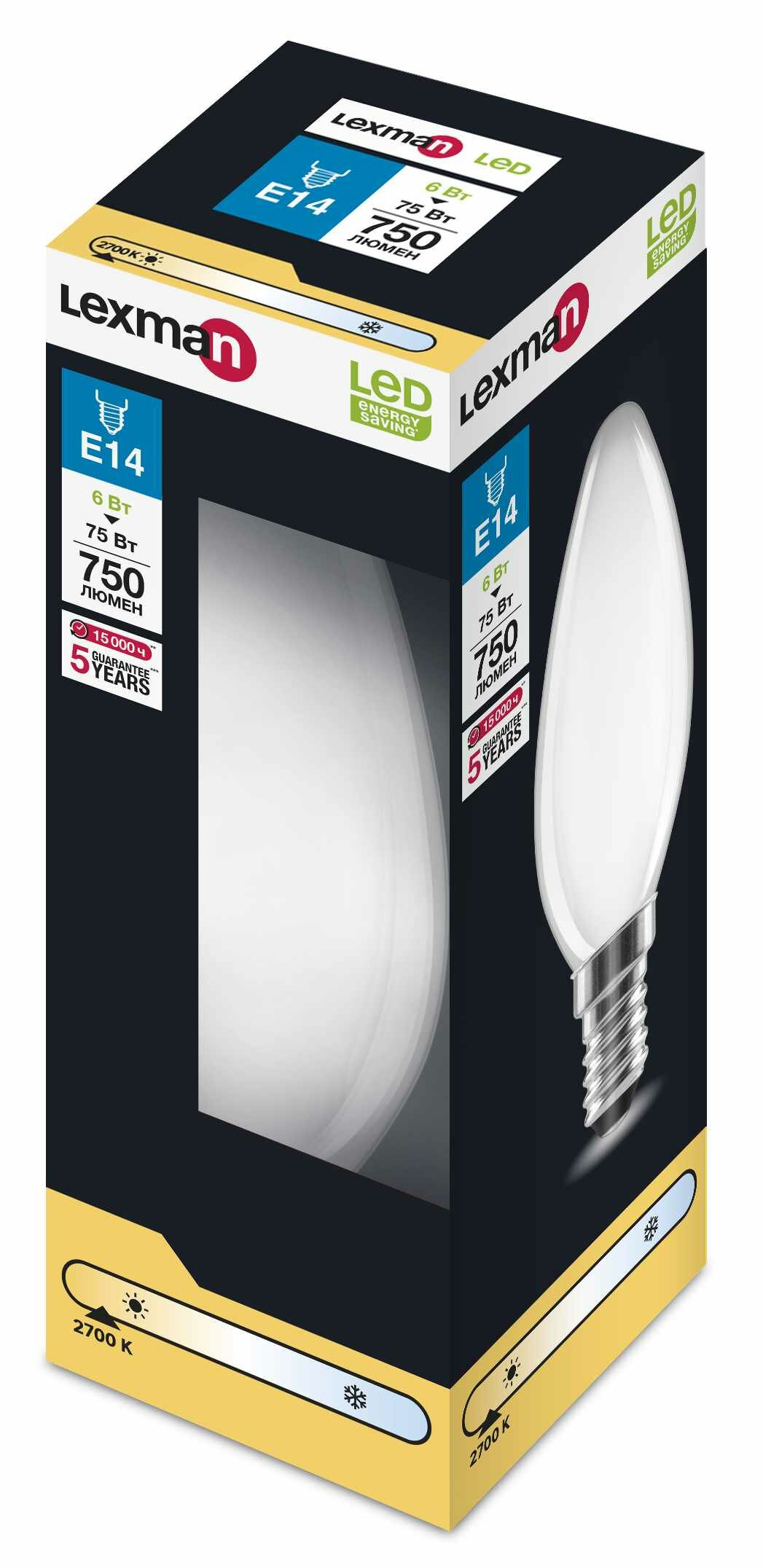 Лампа светодиодная Lexman E14 220-240 В 6 Вт свеча матовая 750 лм теплый белый свет