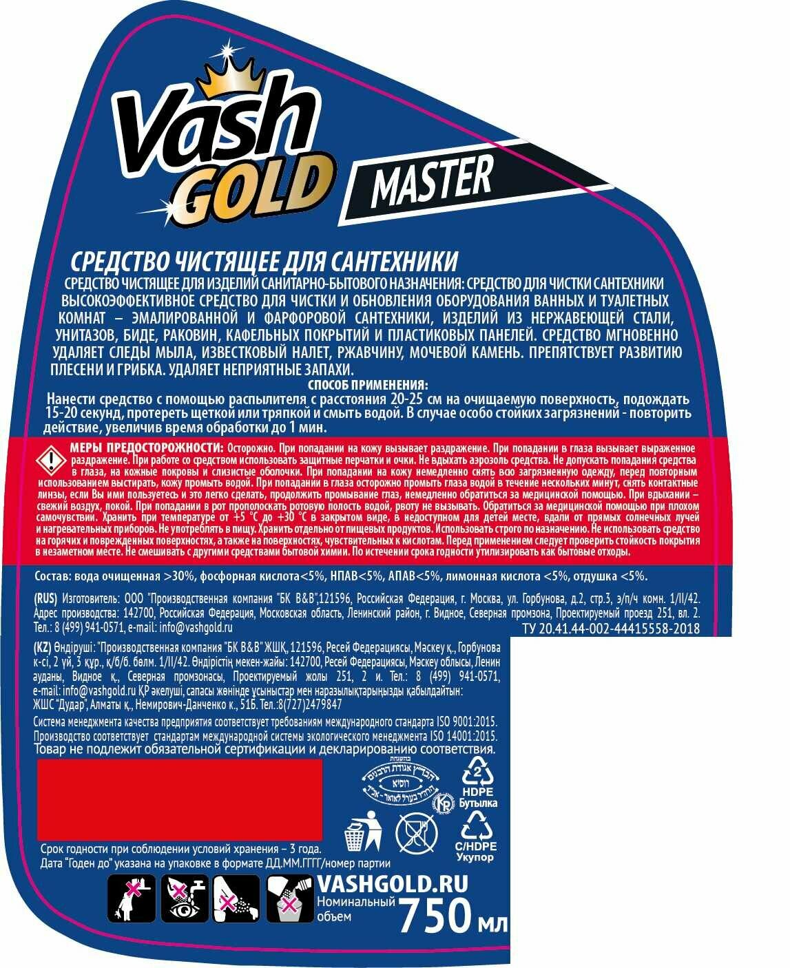 **Средство для чистки сантехники Vash Gold** обеспечивает эффективную очистку поверхностей до блеска и формирует защитный слой. Отлично подходит для разных видов сантехнических приборов, включая ванную, душевую кабину, унитаз. Способствует эффективному удалению известкового налета, следов ржавчины и мыла, мочевого камня. Позволяет избежать появление грибка и плесени. Хорошо справляется с неприятными запахами.