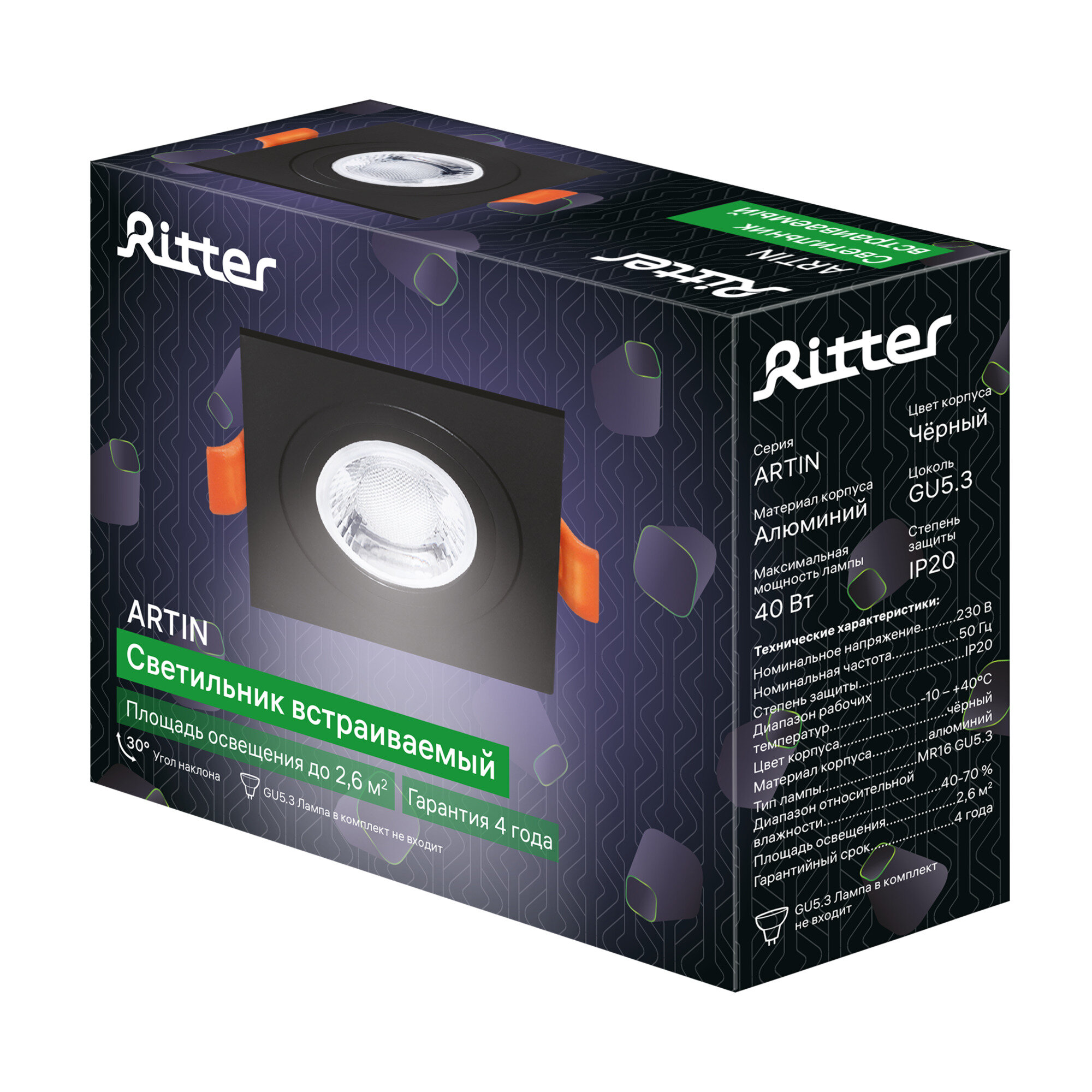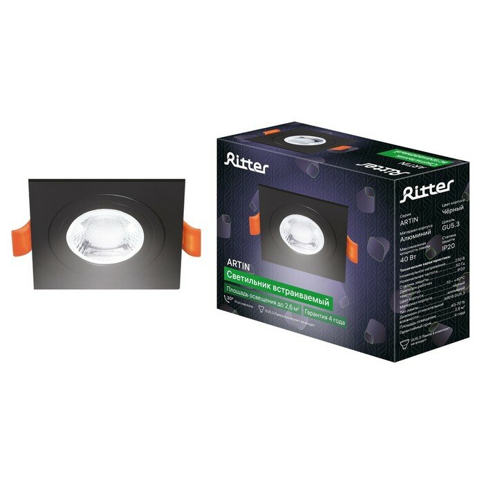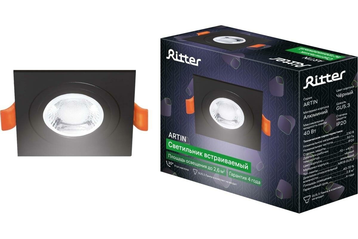 На сегодняшний день товар «Светильник точечный встраиваемый Ritter Artin 51424 4 GU5.3 под отверстие 80 мм цвет черный» можно купить с кешбеком в 1 магазине: Яндекс.Маркет