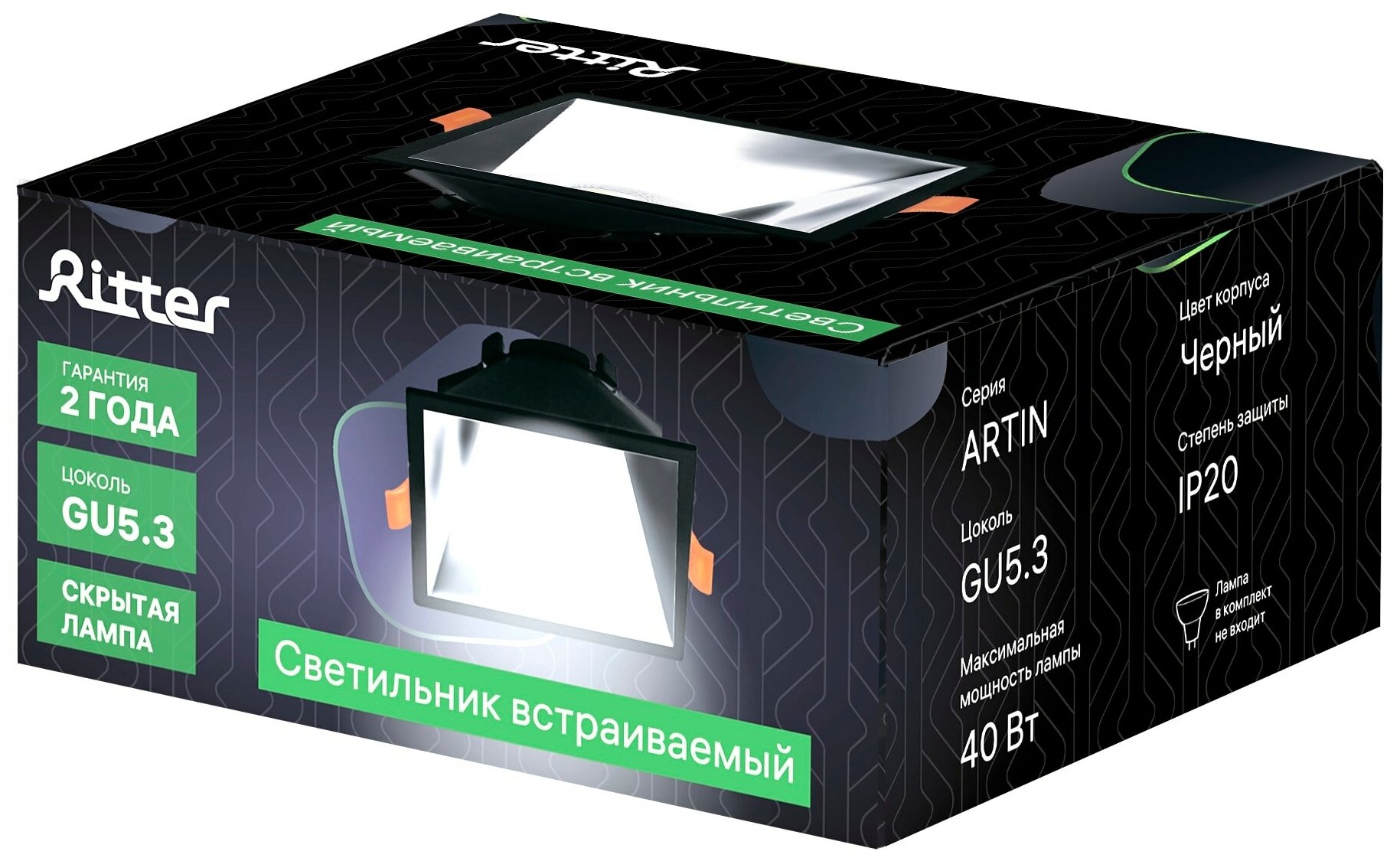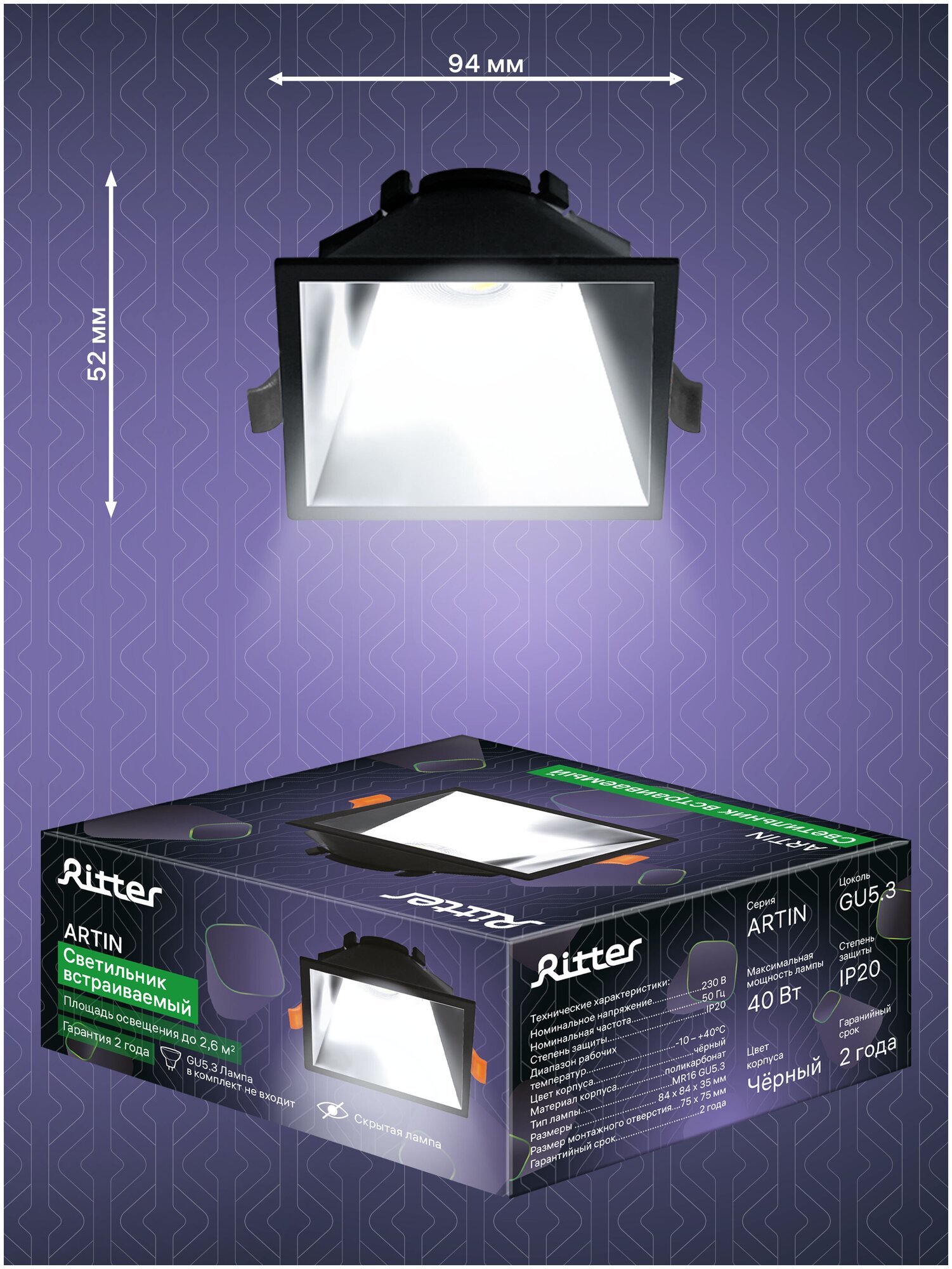 На сегодняшний день товар «Светильник точечный встраиваемый Ritter Artin 51440 4 GU5.3 под отверстие 75х75 мм цвет черный» можно купить с кешбеком в 1 магазине: Яндекс.Маркет