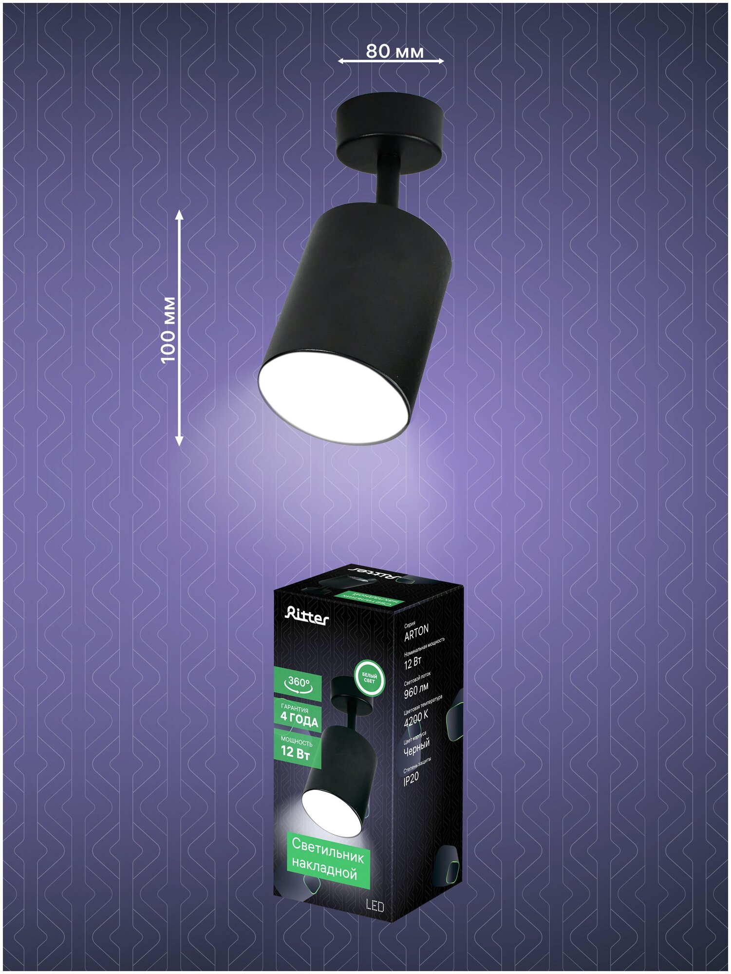 Спот поворотный светодиодный Ritter Arton нейтральный белый свет цвет черный