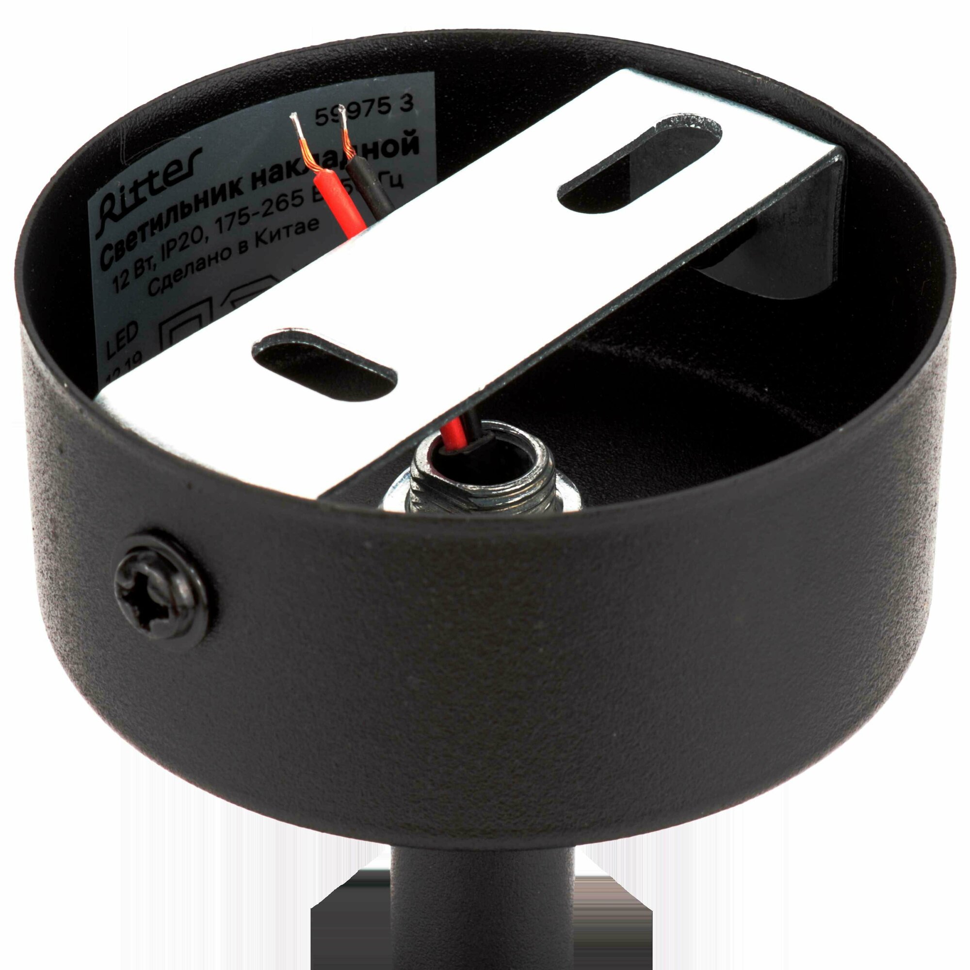 **Спот поворотный светодиодный Ritter Arton** используется для освещения жилых помещений и административных учреждений. Оснащен одним плафоном и встроенными светодиодами. Корпус изготовлен из металла. Цвет — черный. Защита от попадания пыли и влаги — IP20.