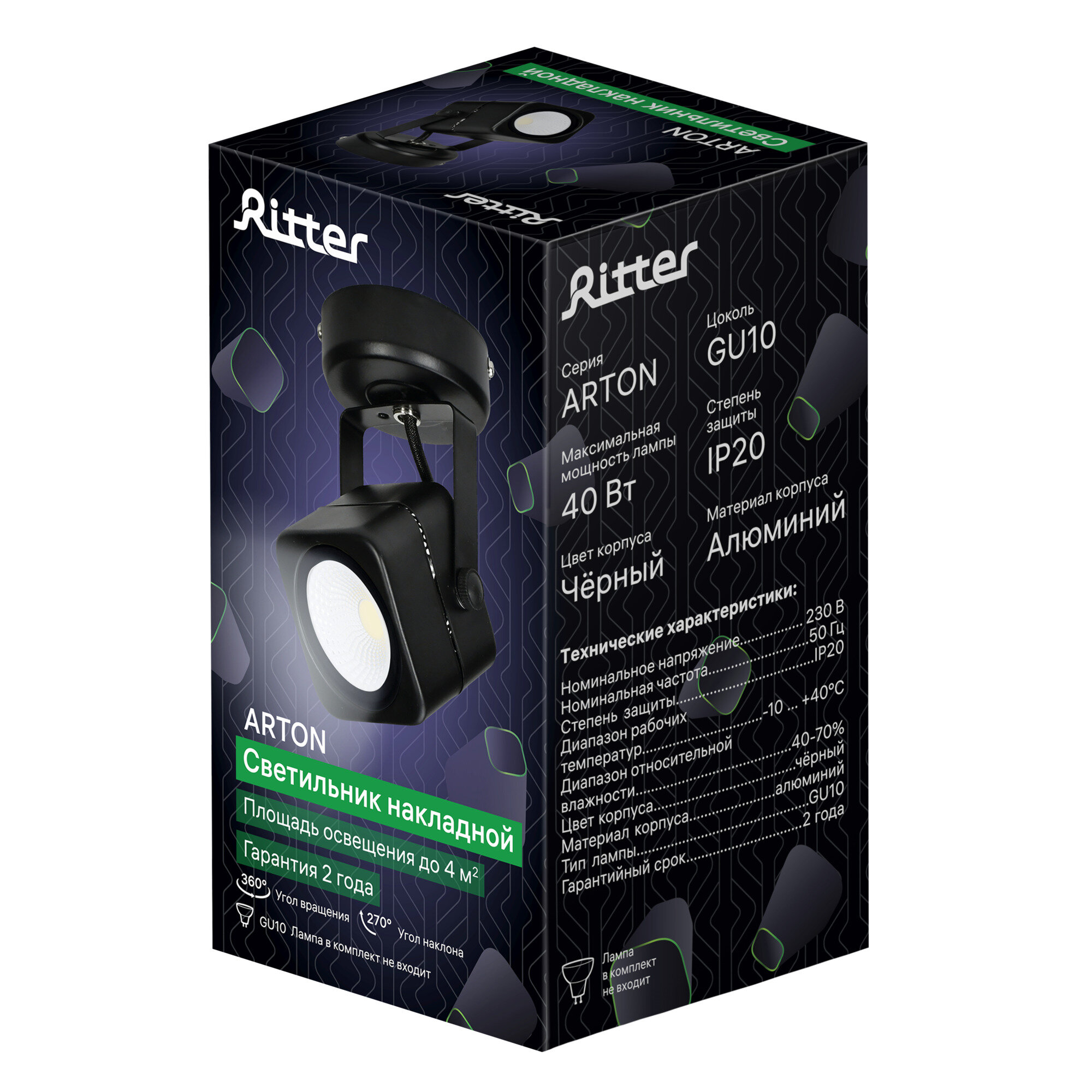 На сегодняшний день товар «Спот поворотный точечный накладной Ritter Arton 59961 6 GU10 цвет черный» можно купить с кешбеком в 1 магазине: Яндекс.Маркет