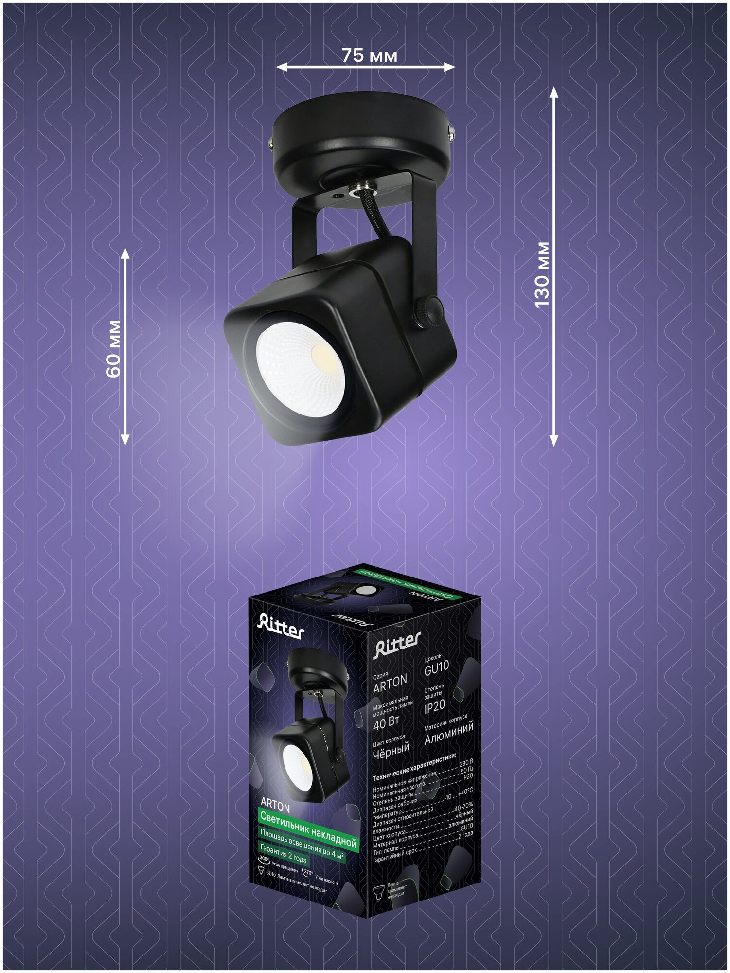 Сервис сравнения цен СкидкаГИД предлагает сравнить цены на товар «Спот поворотный точечный накладной Ritter Arton 59961 6 GU10 цвет черный»