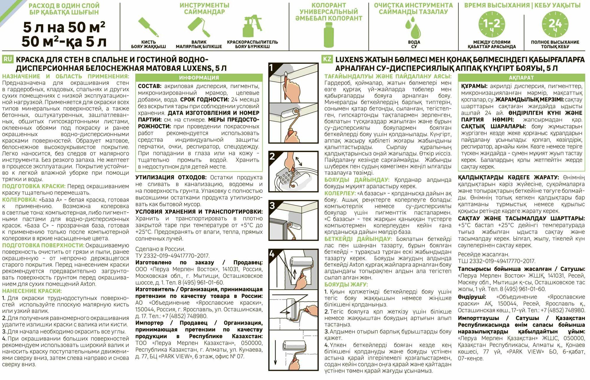 | Тип продукта (локальный) | Краска для внутренних покрытий |