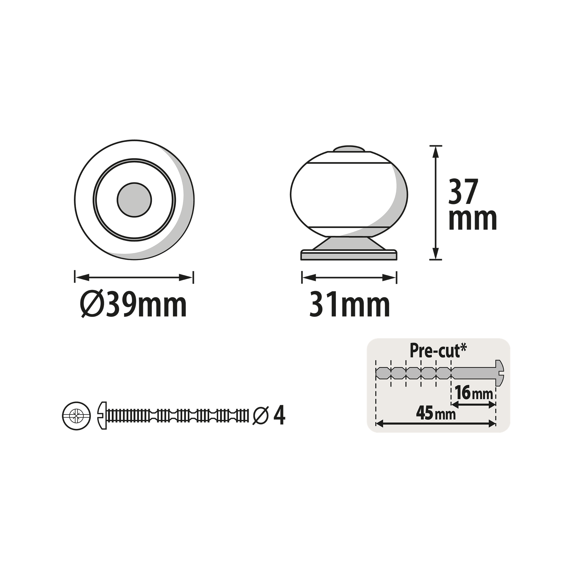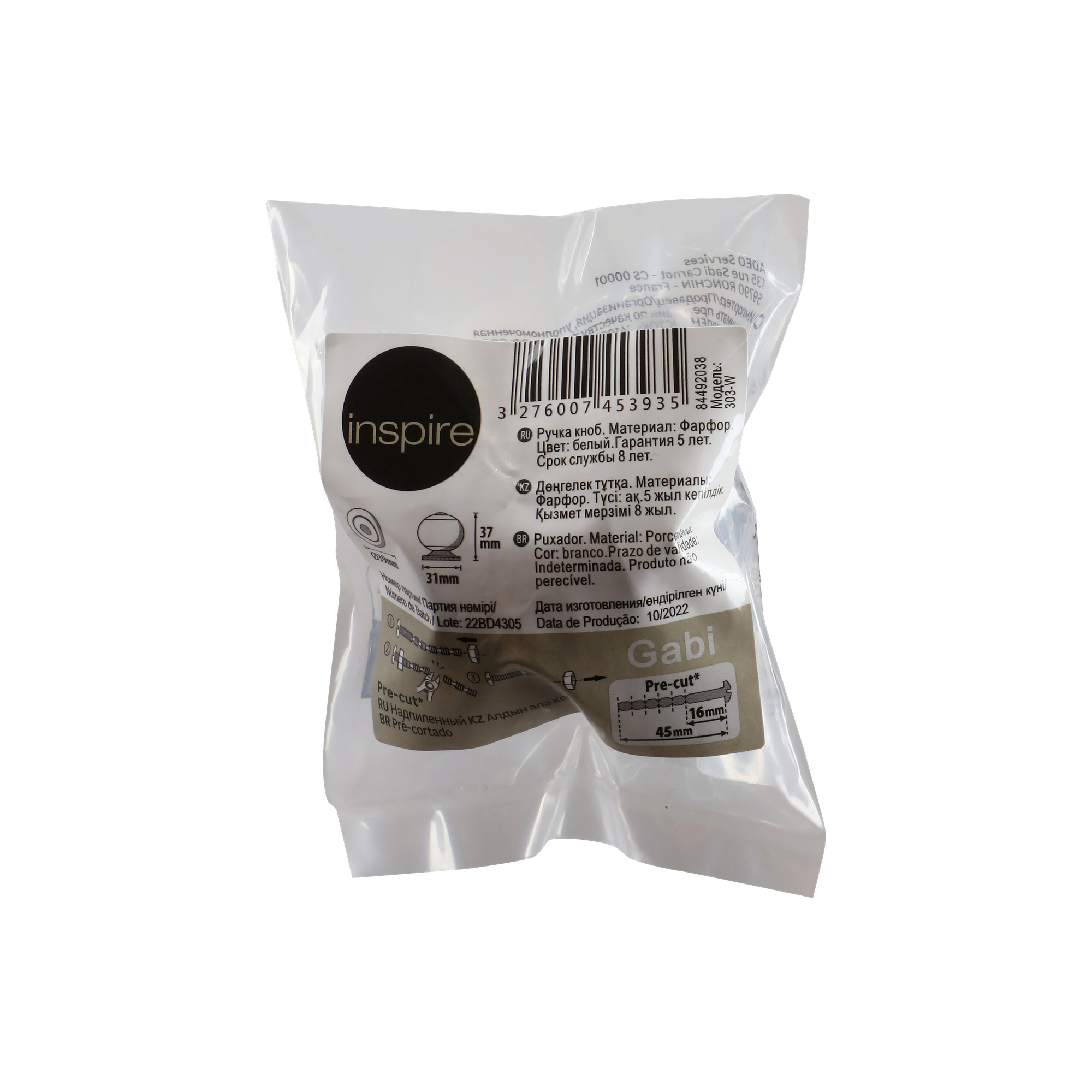 Ручка-кноб Gabi 40x40 мм цвет белый фарфор INSPIRE