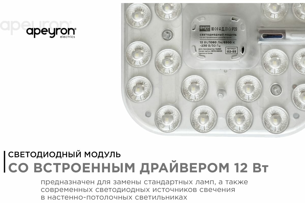 Модуль светодиодный Apeyron квадратный 230В 12Вт 1080Лм холодный белый свет