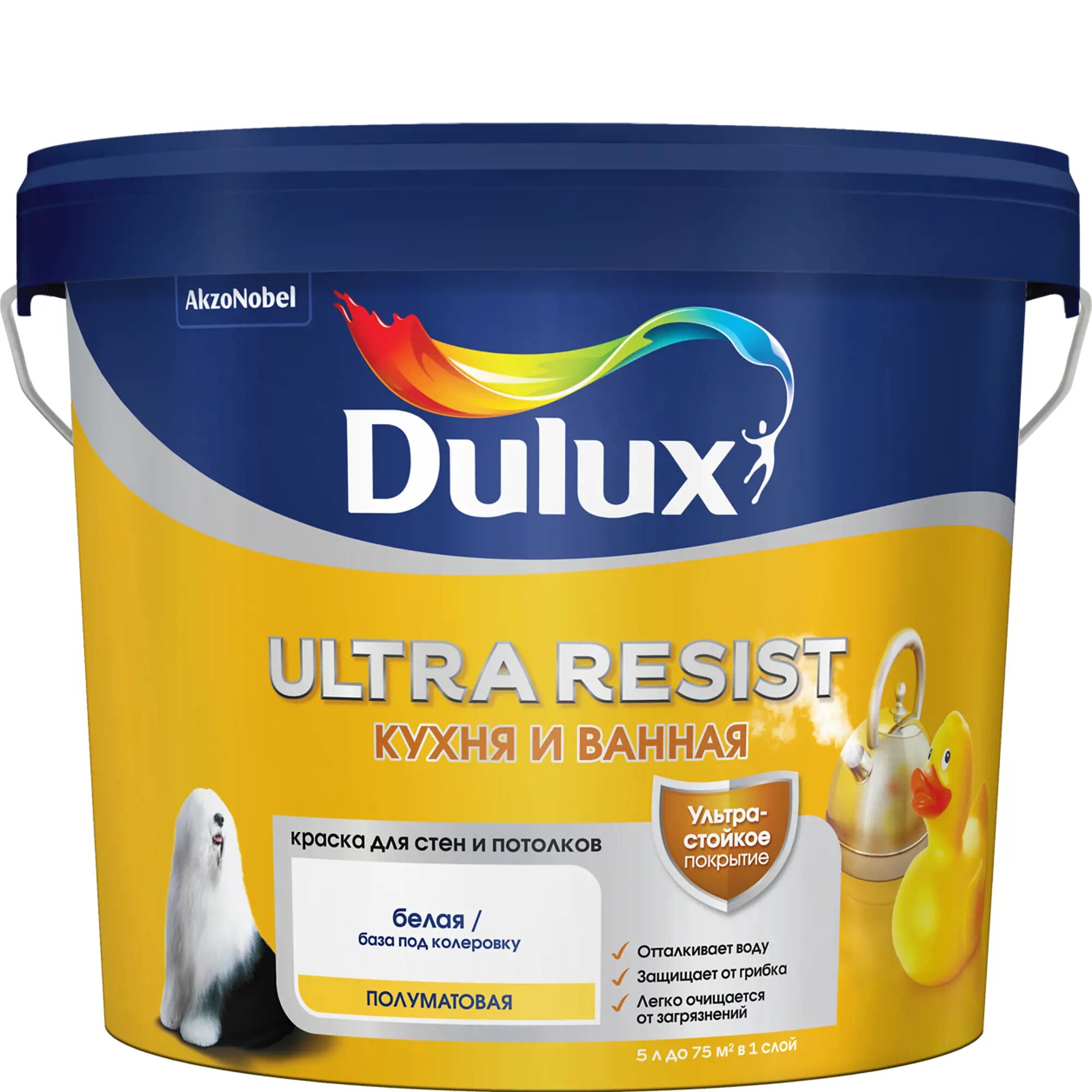 Краска для стен кухни и ванны Dulux Ultra Resist белая база BW 5 л
