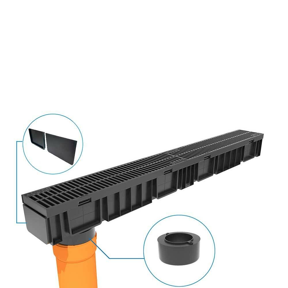 Канал с решеткой 1000x115x96 мм пластик цвет черный Gidrolica
