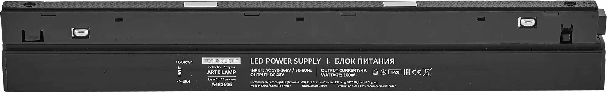 Блок питания Arte Lamp встраиваемый в магнитный трек 200 Вт цвет черный