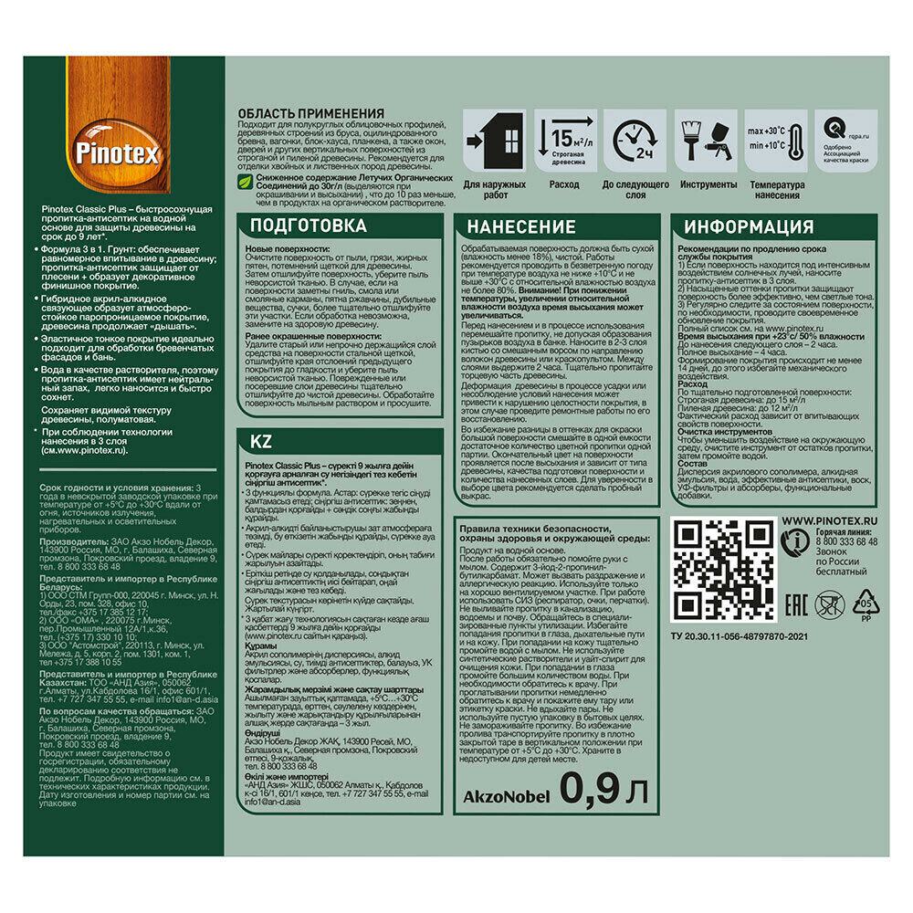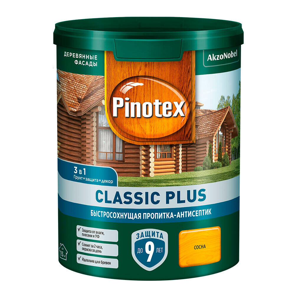 Пропитка Pinotex Classic Plus полуматовая сосна 0.9 л Pinotex-3