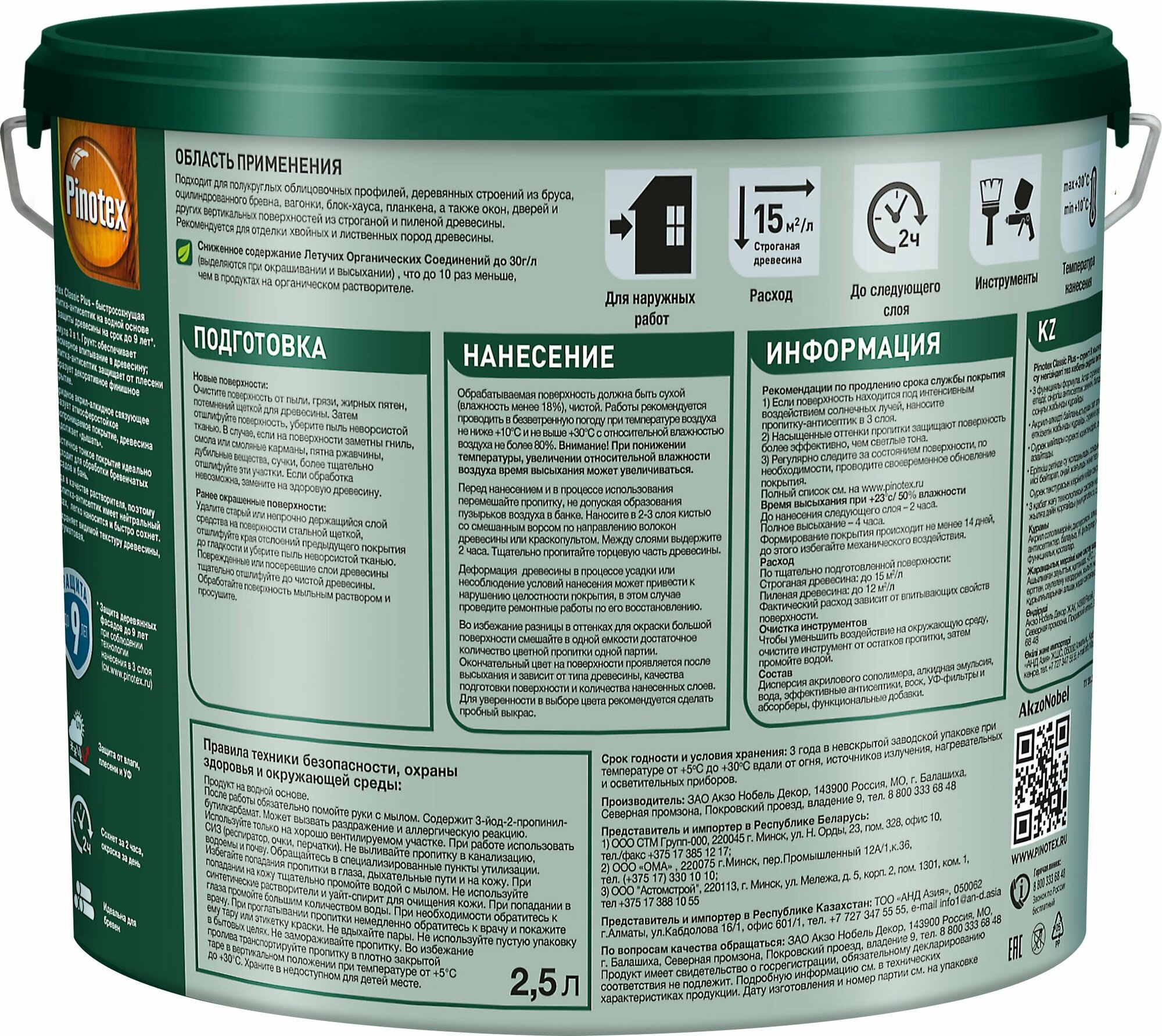 - Гибридно акрил-алкидное связующее образует атмосферостойкое паропроницаемое покрытие, древесина продолжает «дышать»