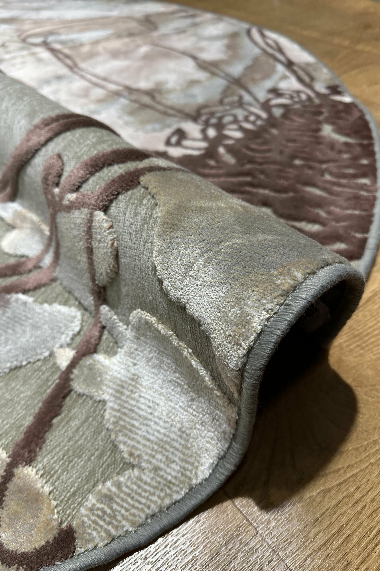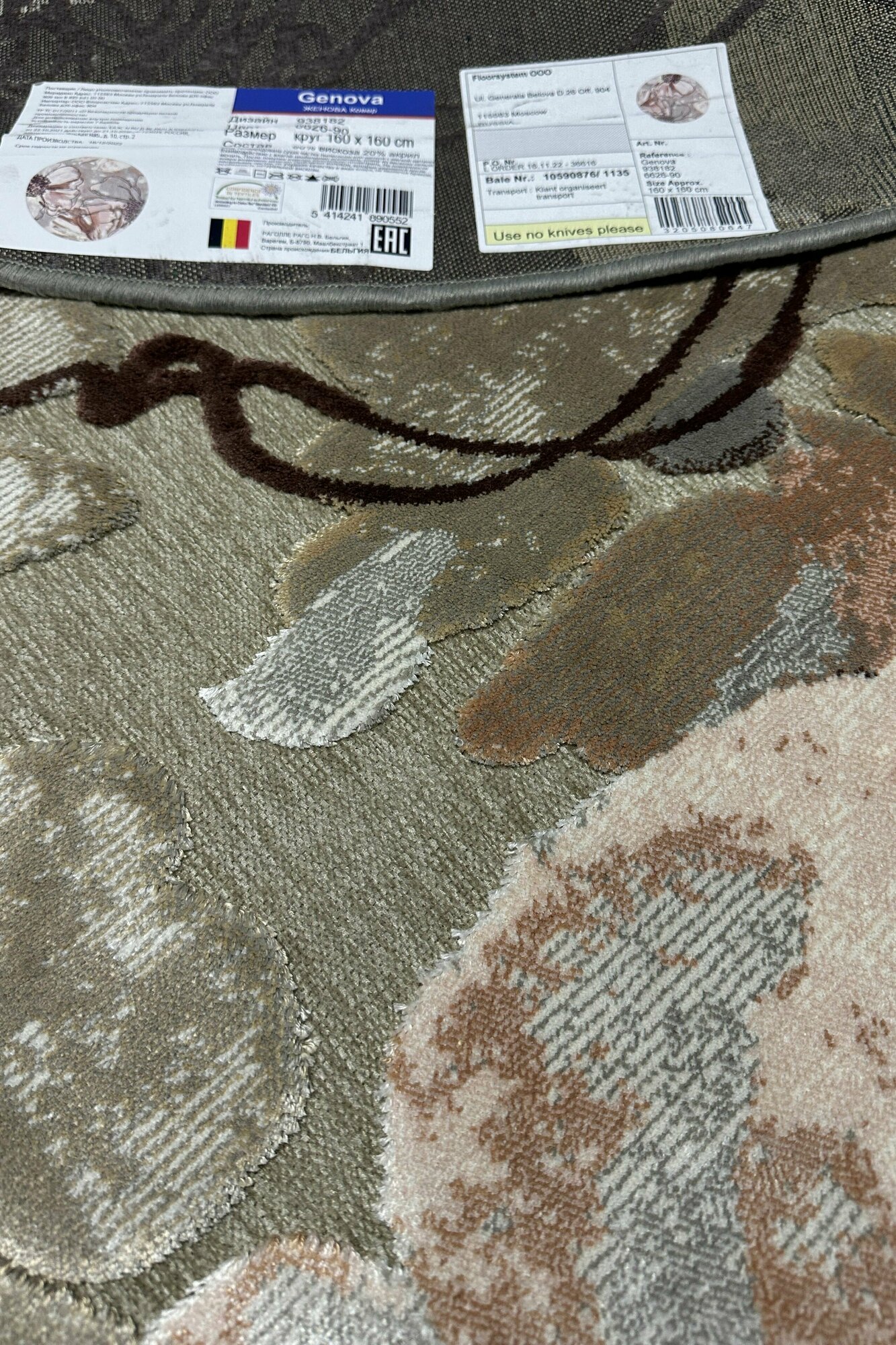 Ковер из вискозы **Genova 182/662690** круглый поможет сделать комнату более уютной и повысить уровень комфорта. Подходит для оформления жилых комнат с нормальным или низким уровнем влажности. Вискозу называют искусственным шелком, она похожа на него визуально и на ощупь, при этом стоимость вискозных ковров значительно ниже шелковых. Вискоза имеет натуральное происхождение - это переработанная древесная целлюлоза. Сочетание в ковре гладких и ворсистых нитей создает эффект рельефной поверхности. Размер — 1,6х1,6 м круг. Страна производства — Бельгия.