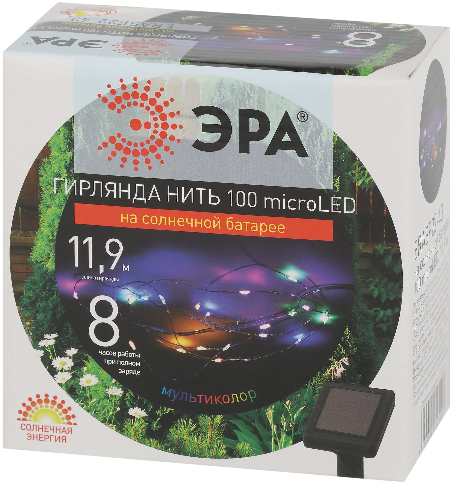 Гирлянда светодиодная нить Эра ERASF22-43 на солнечных батареях 10 м цвет разноцветный Б0053370