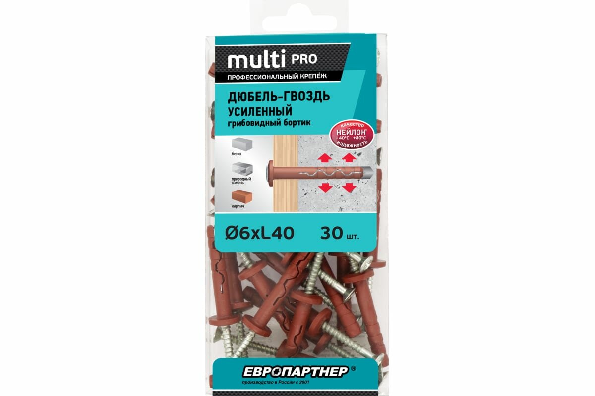 Дюбель-гвоздь усиленный универсальный 6x40 мм 30 шт. Европартнер