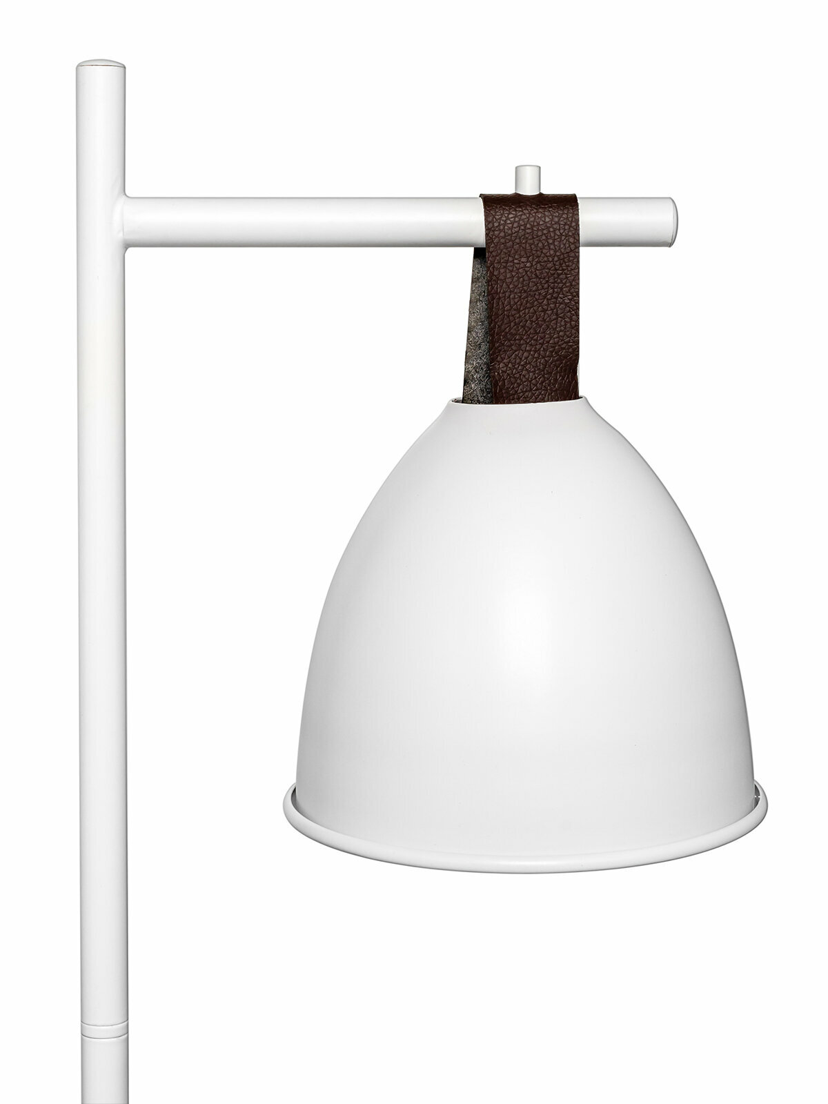 - светильник состоит из основания, стойки и плафона белого цвета, подвешенного на кожаный коричневый ремешок;