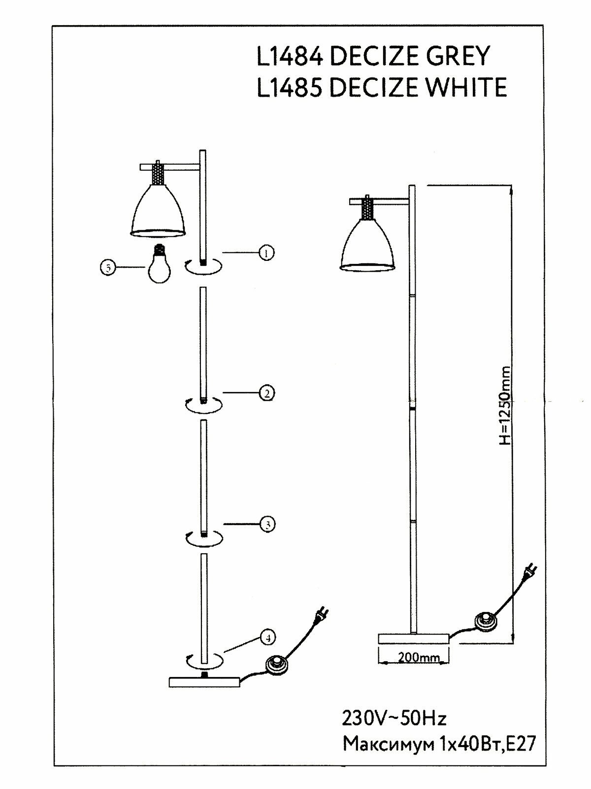**Торшер Lamplandia Decize White L1485** обладает современным дизайном, органично вписывается в интерьеры шале, ар-деко, классика, модерн. Он устанавливается на кухне, в спальне, детской комнате, гостиной, кабинете. Торшер выполняет функцию дополнительного освещения и декоративного элемента. Его удобно перемещать, меняя зоны для освещения благодаря его компактным габаритам: высота — 1,235 м, диаметр абажура — 15 см., вес — 3,2 кг.