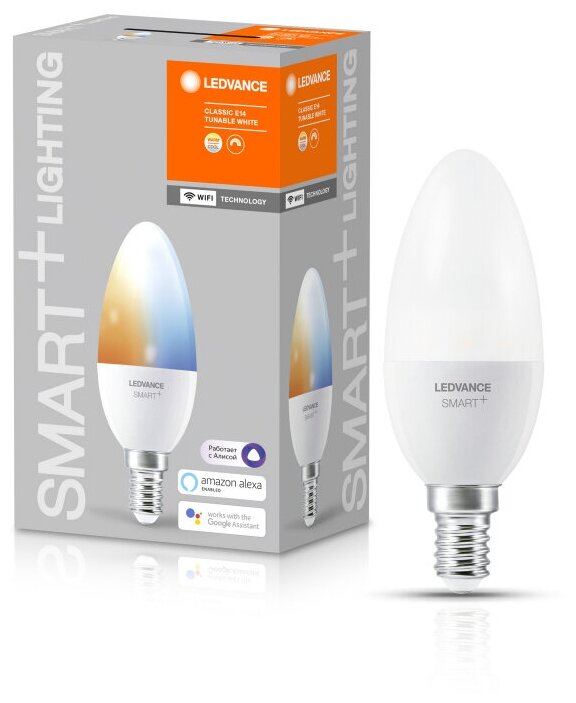 Лампа умная светодиодная Wi-Fi Osram Smart Plus E14 220-240 В 5 Вт свеча матовая 470 лм изменение оттенков белого LEDVANCE