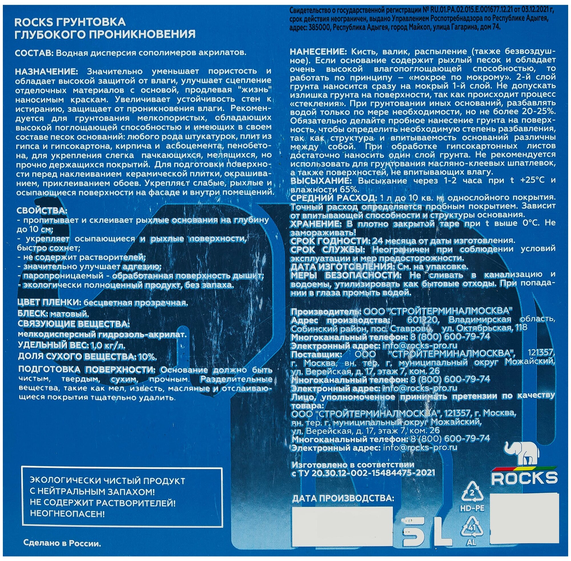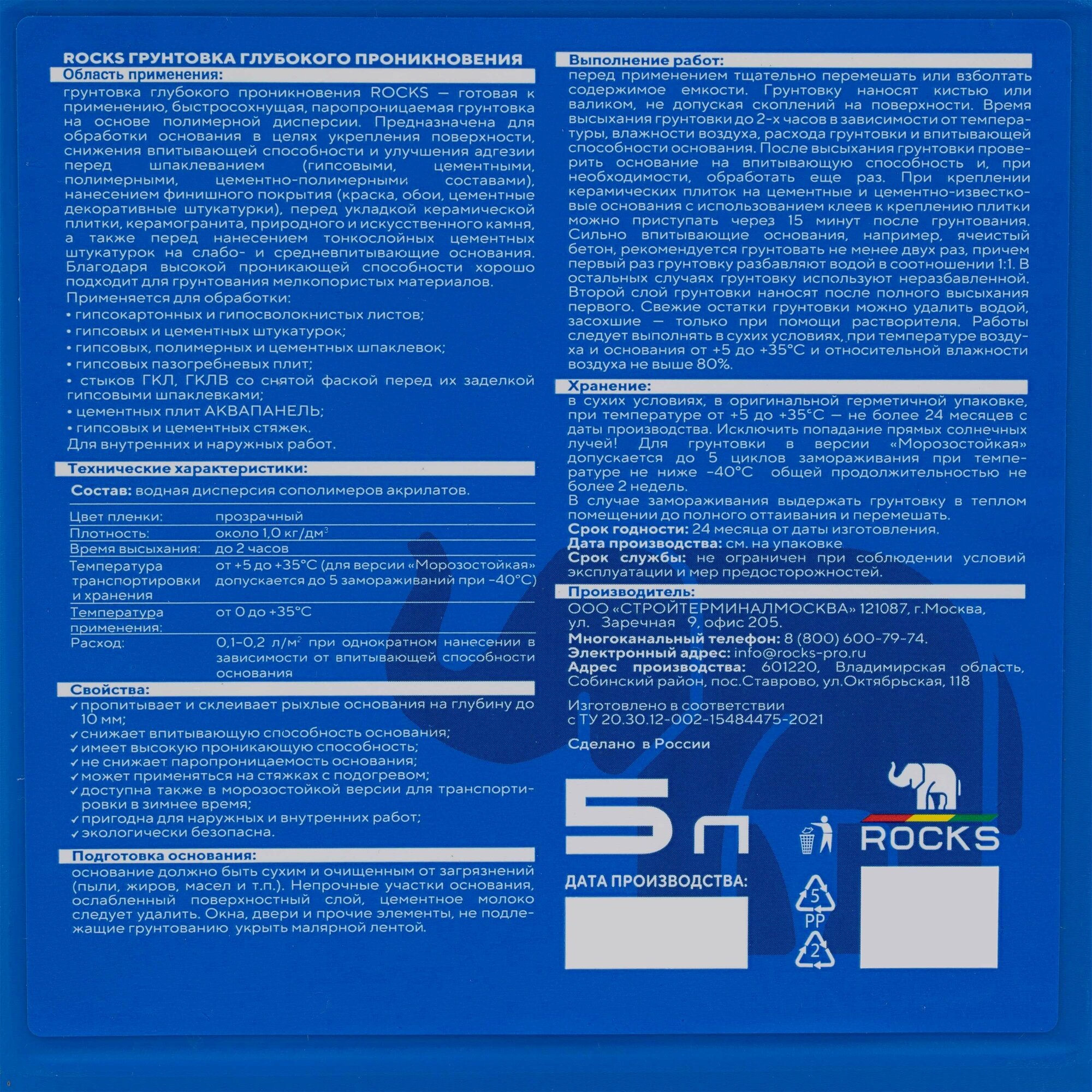 Грунтовка глубокого проникновения ROCKS имеет высокую проникающую способность и прекрасно подходит для грунтования мелкопористых материалов.