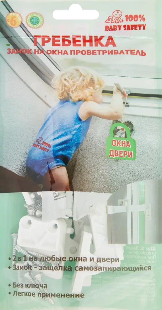 **Блокиратор на окно «Гребенка»** предназначен для фиксации окон и балконных дверей при проветривании. Позволяет приоткрыть створку на расстояние, безопасное для детей или домашних животных. Прочно фиксирует ее в заданном положении, не позволяя створке открываться полностью. Предотвращает захлопывание при сквозняках и сильных порывах ветра.