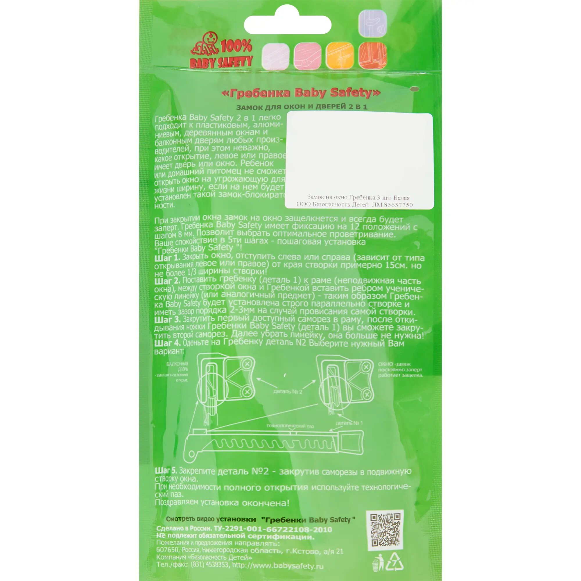 Блокиратор на окно «Гребенка» пластик цвет белый 3 шт. 100 % BABY SAFETY