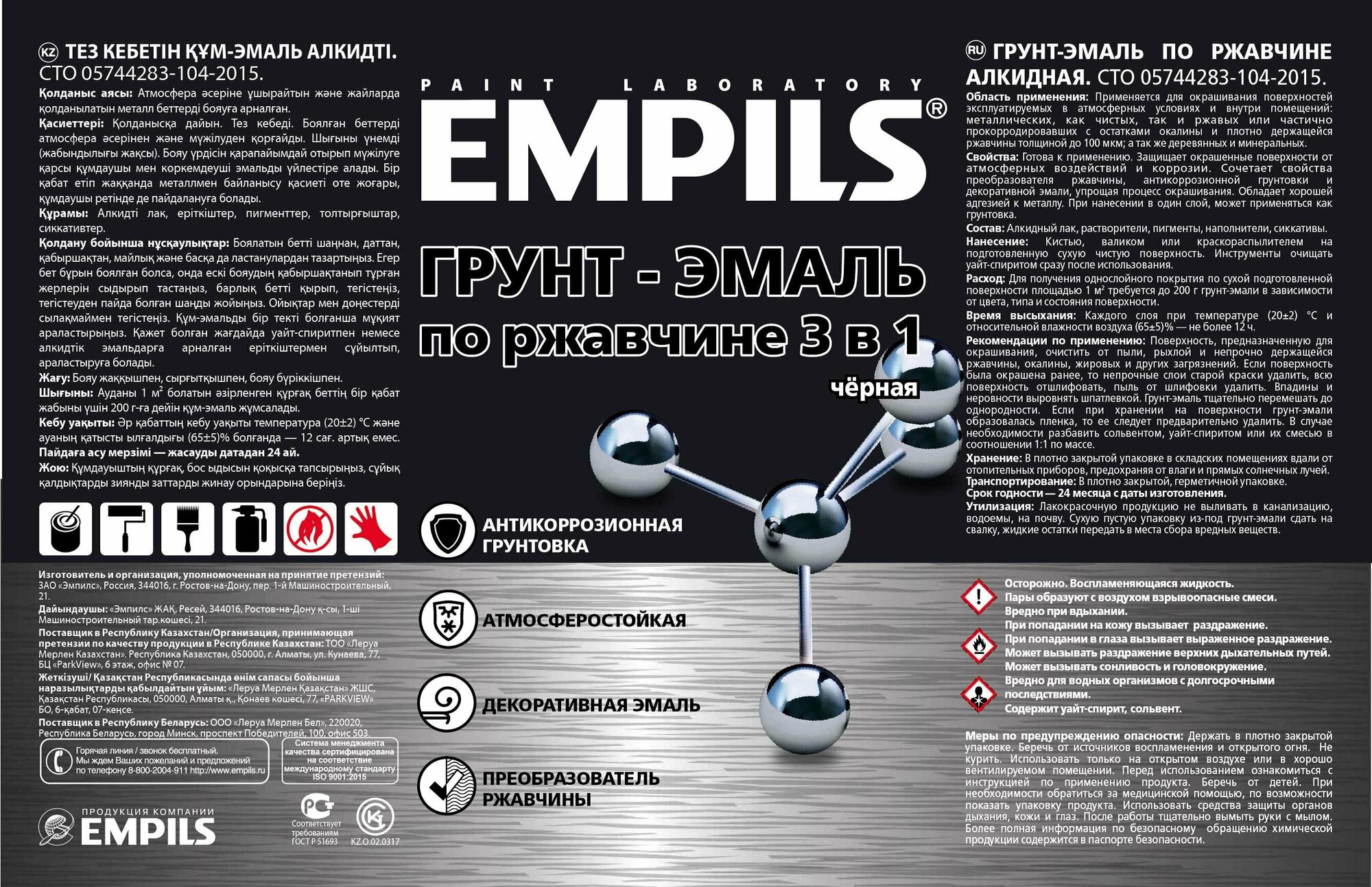 **Грунт-эмаль по ржавчине 3 в 1 Empils PL** комбинирует в себе функции трех строительных материалов: грунтовки, эмали и преобразователя ржавчины. Защищает конструкции от коррозии, выполняет функции декоративного покрытия. Значительно упрощает процесс окрашивания, экономит материал.