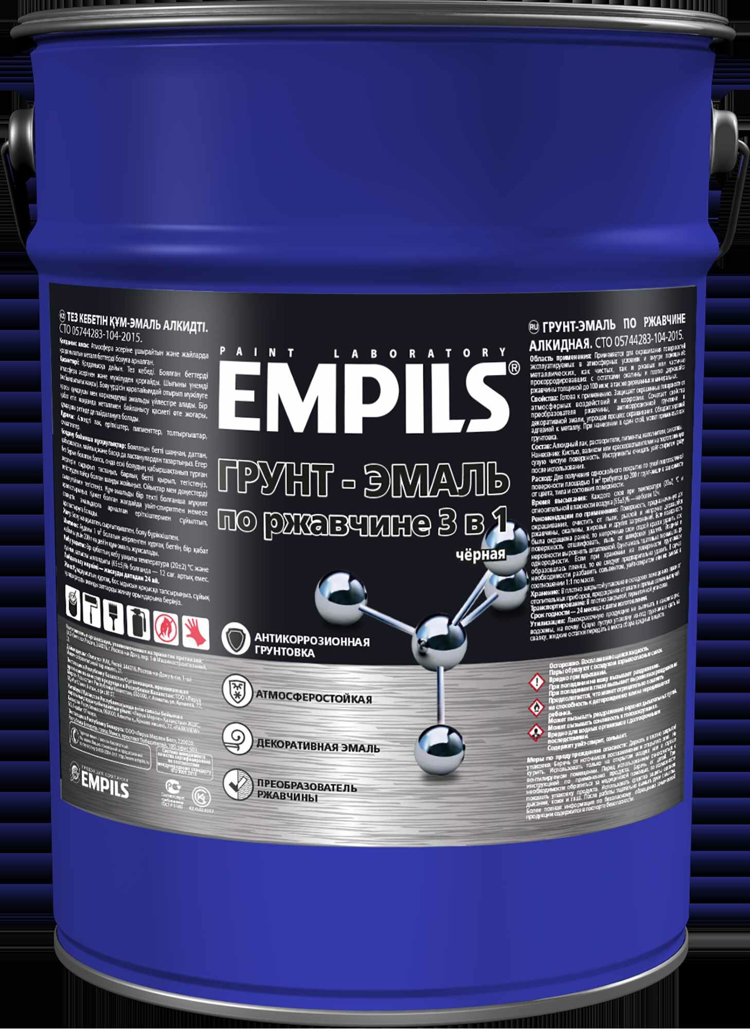 Грунт-эмаль по ржавчине 3 в 1 Empils PL цвет черный 5 кг