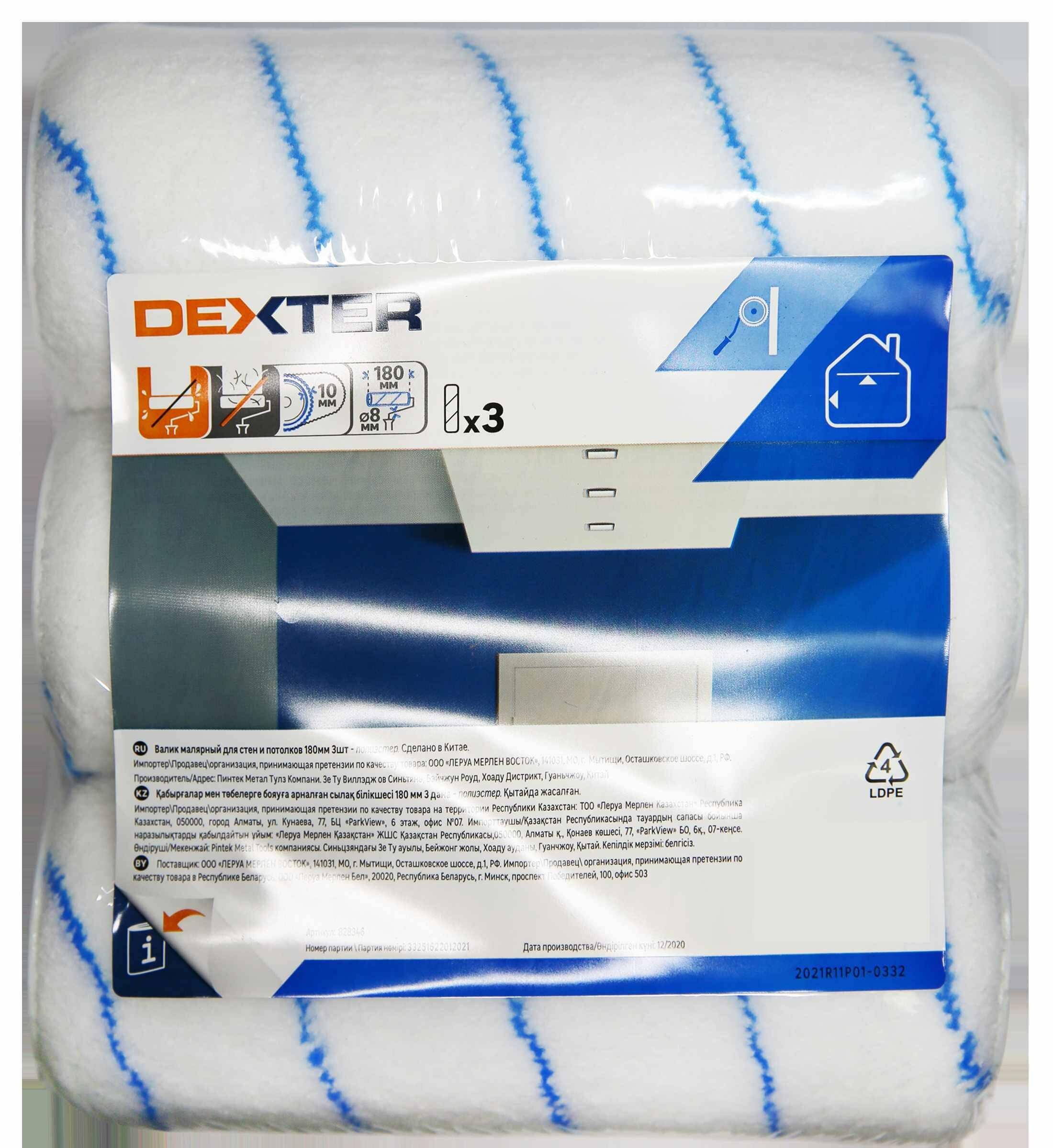 Валик для водных красок Dexter 180 мм 3 шт.