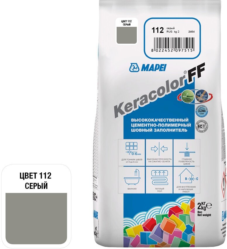 Затирка цементная Mapei Keracolor FF 112 цвет серый 2 кг