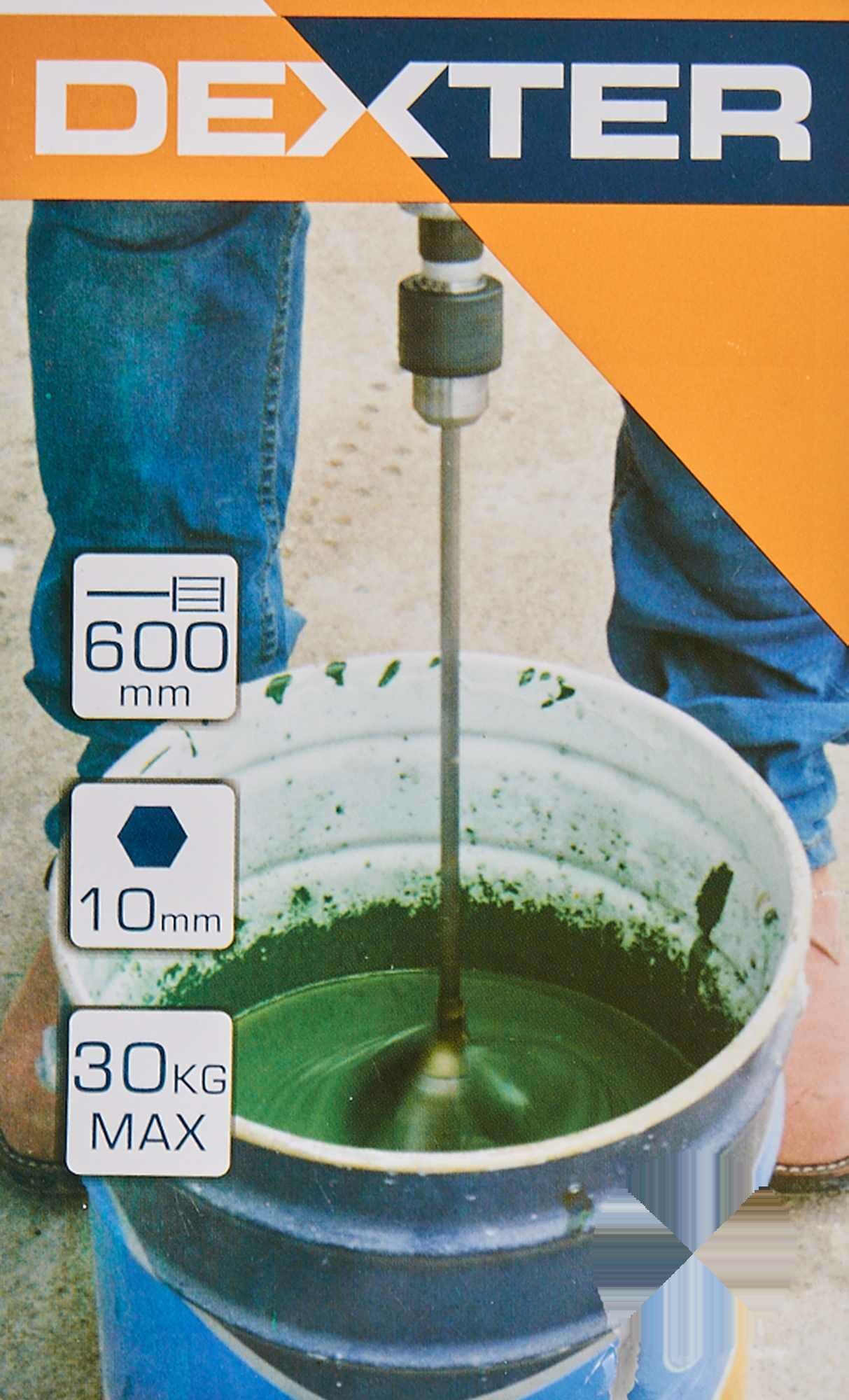 **Насадка электромиксера Dexter** предназначена для отделочных и ремонтных работ по перемешиванию тяжелых материалов с высокой степенью вязкости. Это предотвращает их высыхание и загущение. Используется с дрелями, имеющими шестигранные цоколи. Материалом изготовления выступает сталь, что придает изделию высокие ресурсные показатели и долговечность эксплуатации.