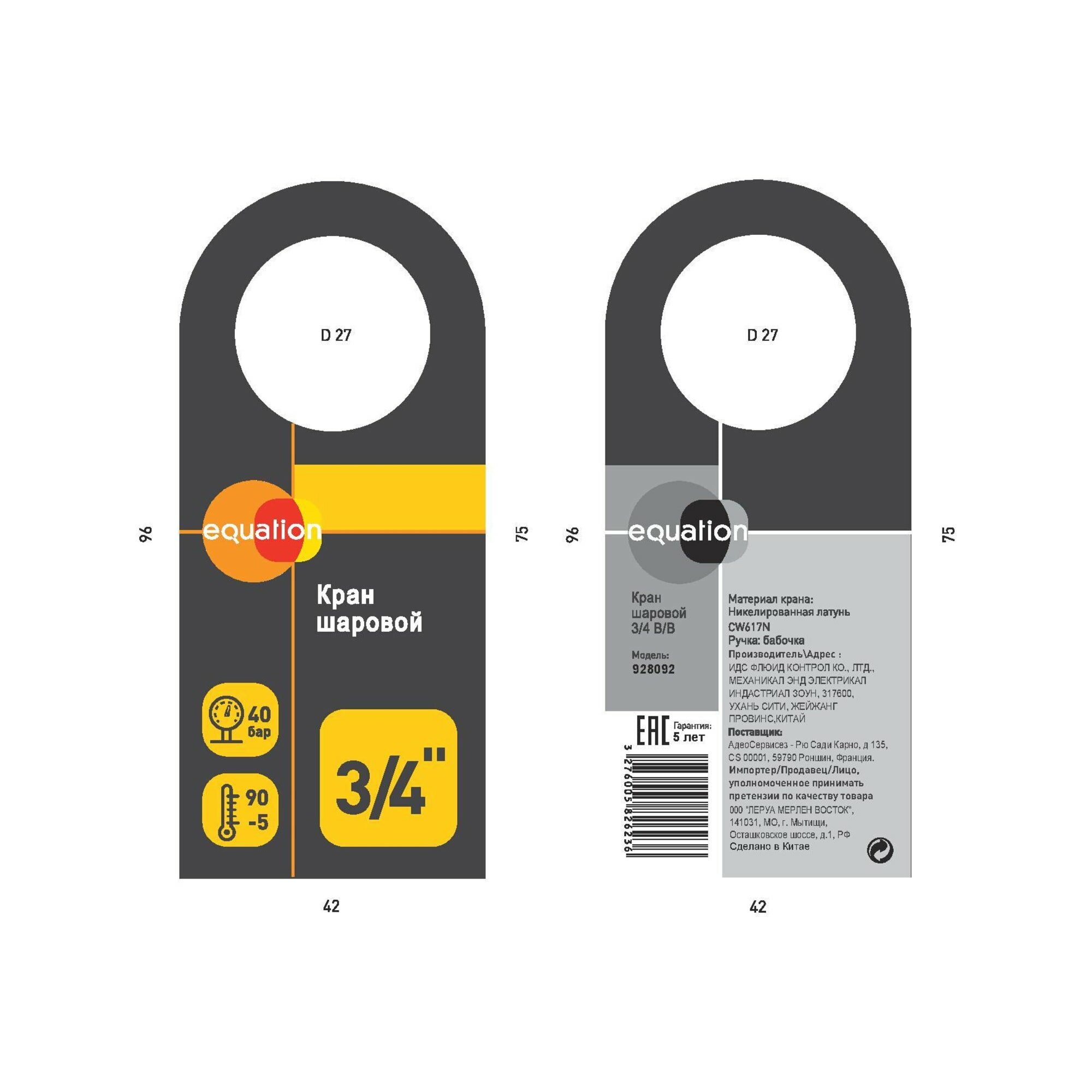 Сервис сравнения цен СкидкаГИД предлагает сравнить цены на товар «Кран шаровой Equation 3/4" внутренняя-внутренняя резьба»