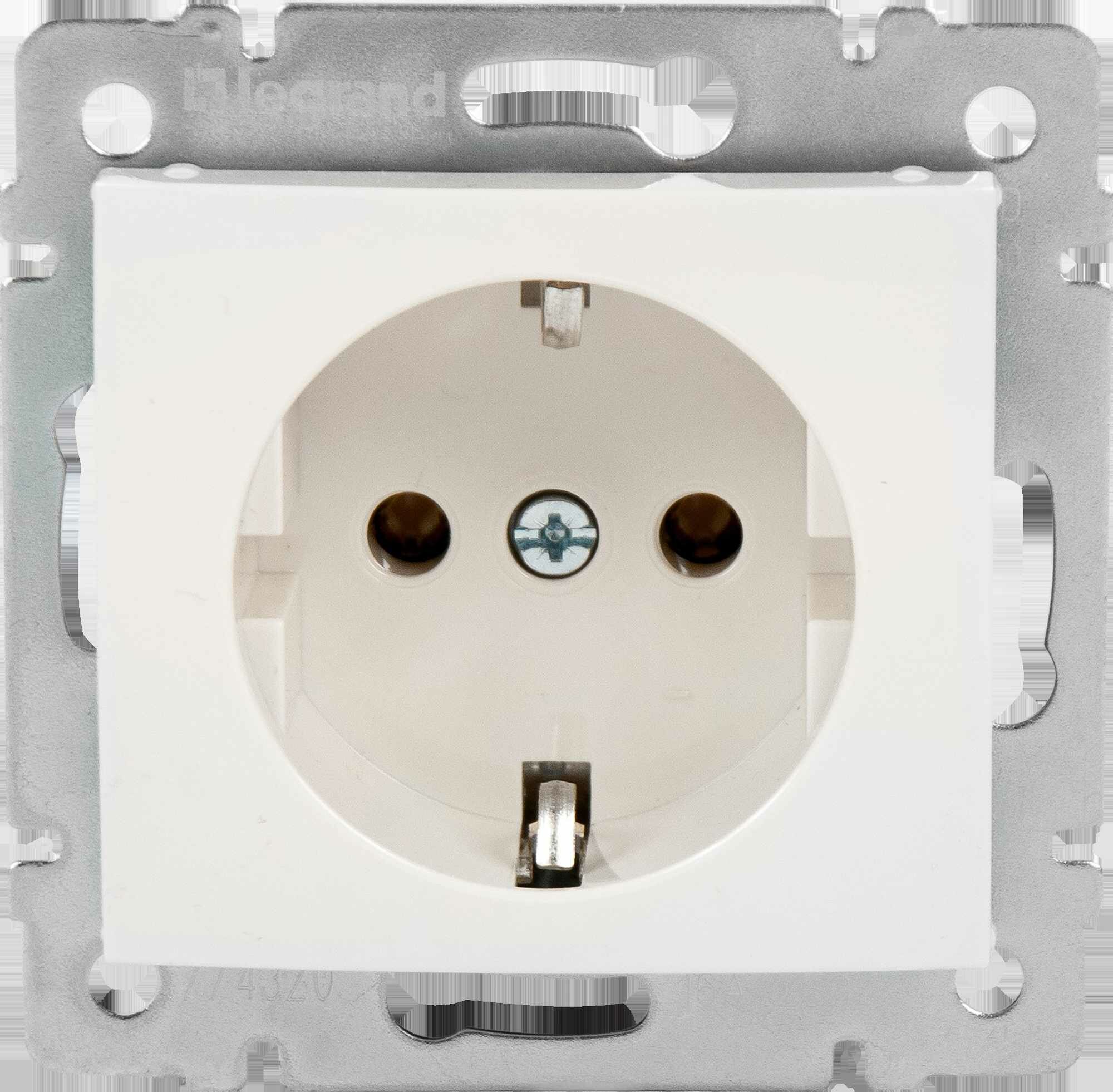 **Розетка с заземлением с защитными шторками Legrand Valena Classic** для скрытого монтажа, цвет слоновая кость. Максимальный ток 16 А, максимальная мощность 3680 Вт. Применяется в зданиях, оборудованных для повышения безопасности проводкой с заземлением (с защитным проводником). Рекомендуются к применению в помещениях с детьми.Шторки осуществляют защитную функцию путём ограничения доступа к токоведущим контактам. Доступ открывается только при подключении вилки.