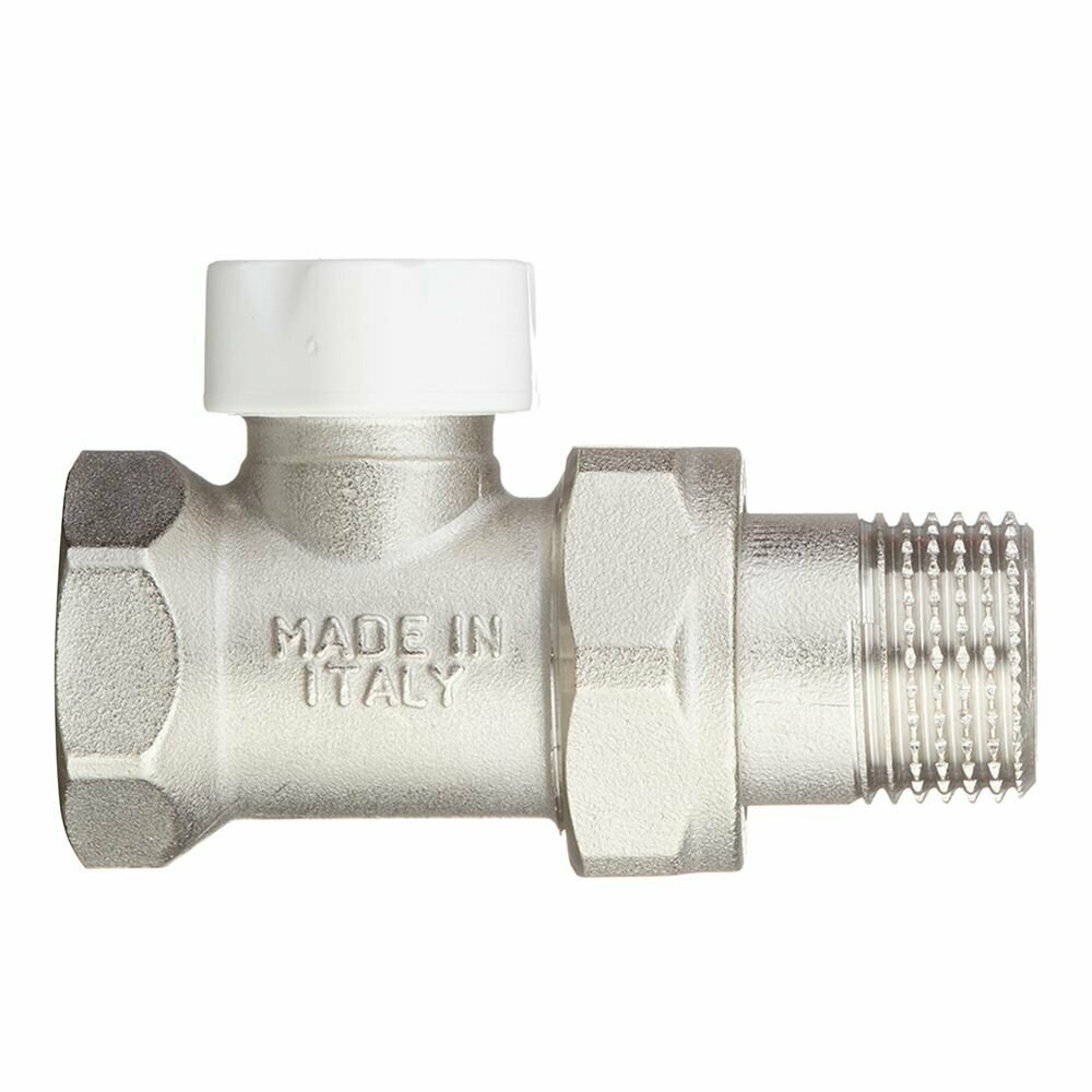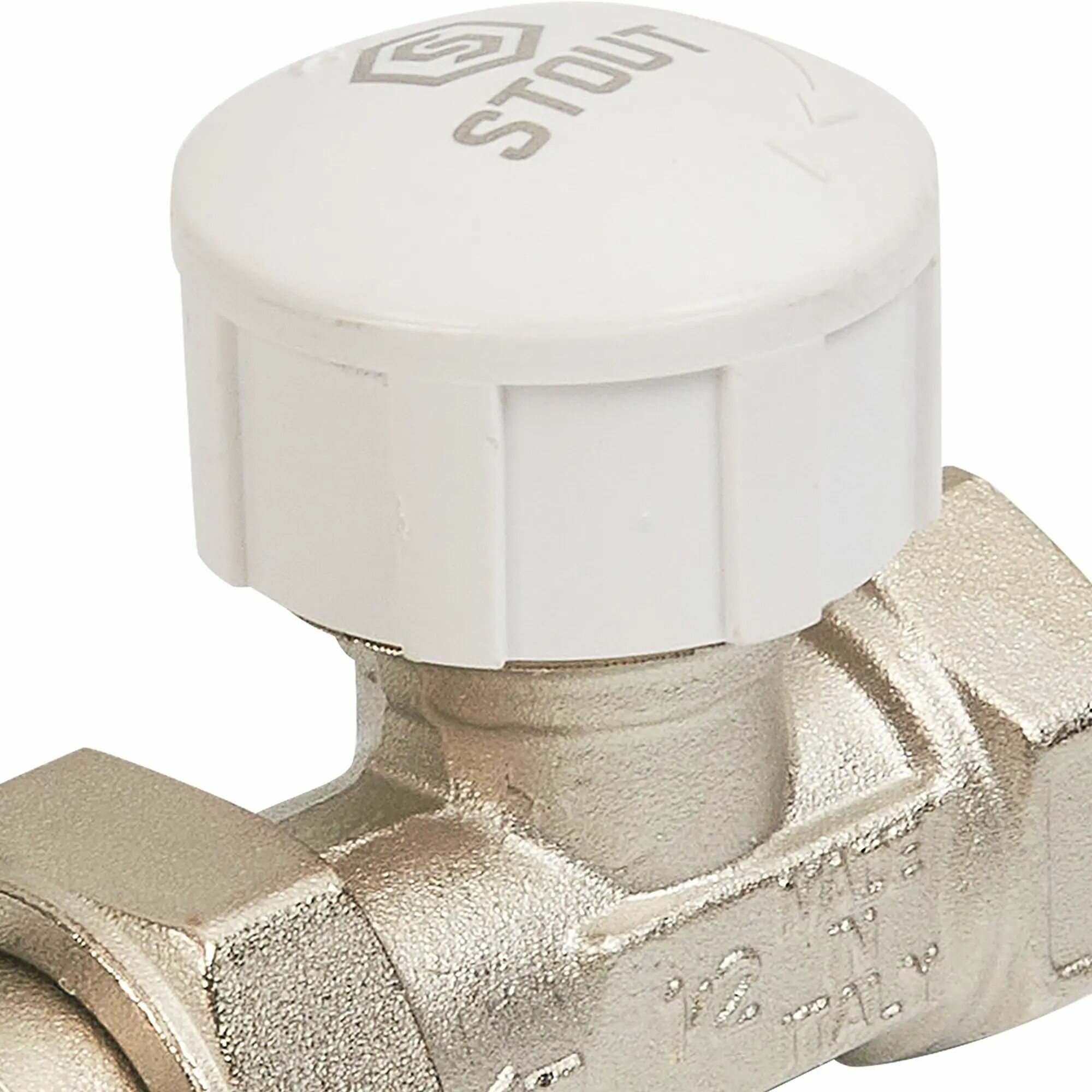 **Плоский кран шаровый с фильтром Stout** — полнопроходной фитинг, состоящий из металлического корпуса со стальным шаром внутри. Оснащен рычажком для регулировки силы потока или его перекрытия.